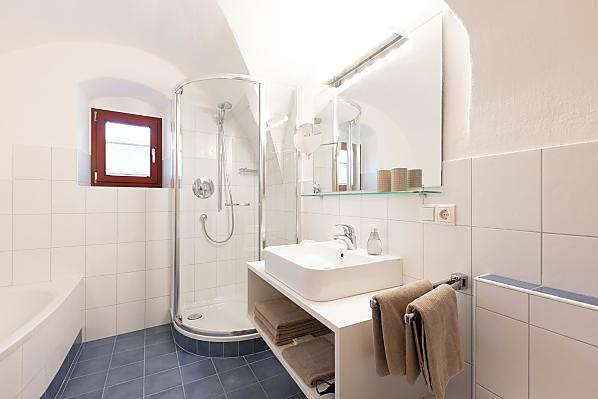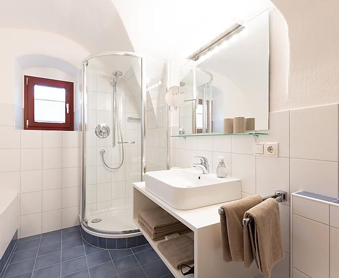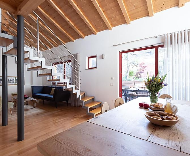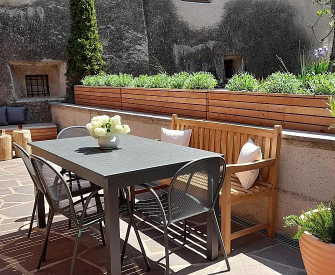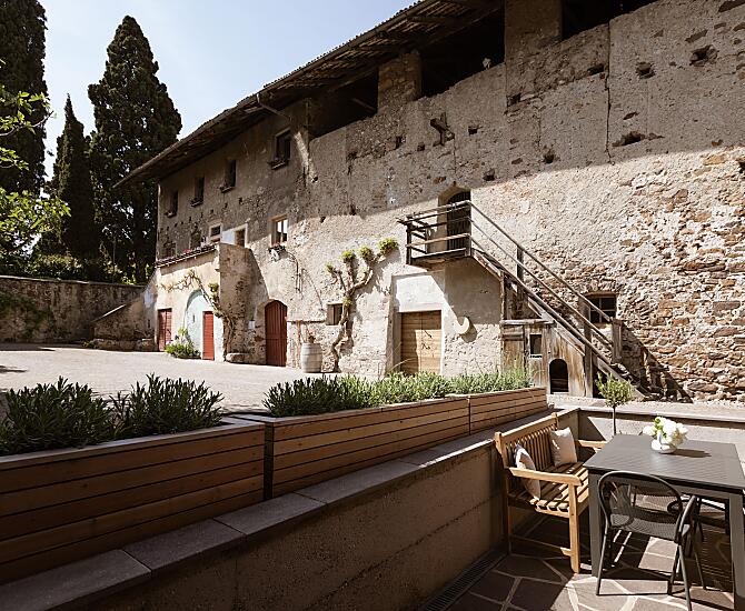 Nasz pięknie odnowiony dom wakacyjny znajduje się częściowo na idyllicznym dziedzińcu naszego Ansitz Pastreinbach i wychodzi na zachód z pięknym widokiem na okoliczne winnice i Mendelkamm. Ma bezpośredni dostęp do naszego dużego ogrodu pełnego kwitnących kwiatów, krzewów i drzew owocowych oraz nowo posadzonej winnicy.