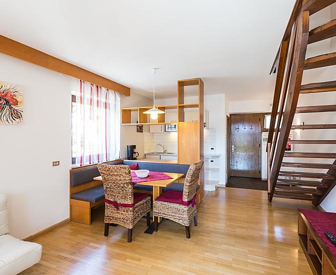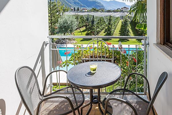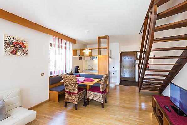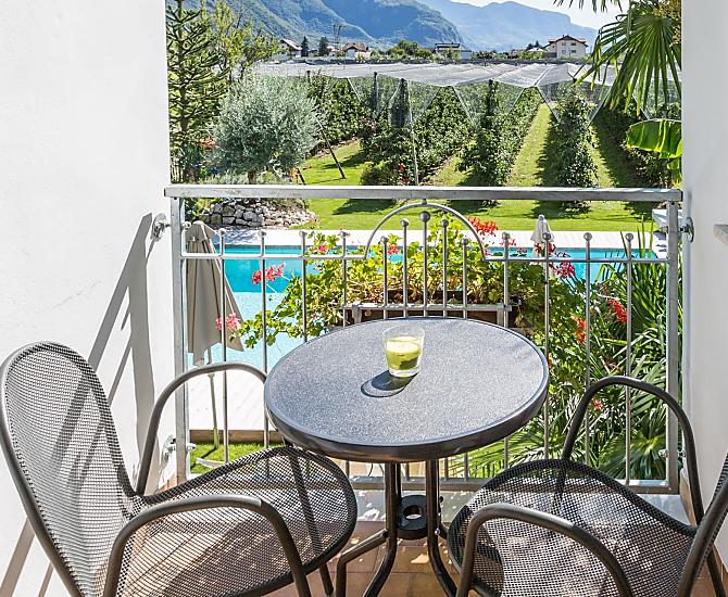 Nasze gospodarstwo owocowe znajduje sie w srodku sadów jablkowych na poludnie od Bolzano. Jestesmy firma rodzinna i wynajmujemy duze, dobrze wyposazone mieszkania wakacyjne na dwóch pietrach. Idealny punkt startowy dla rowerzystów. Na naszym przestronnym sródziemnomorskim trawniku do opalania z placem zabaw i odkrytym basenem mozesz dac sie poniesc duszy, a Twoje dzieci beda sie dobrze bawic w basenie lub na placu zabaw dla dzieci. Tenis stolowy i pilkarzyki to rozrywka dla mlodszych i starszych. Mamy dla Ciebie mala chatke grillowa i duzy taras sloneczny, na którym mozesz wygodnie zjesc sniadanie lub posilek. W poblizu znajduja sie dobre polaczenia komunikacyjne, dzieki którym w ciagu kilku minut mozesz znalezc sie w centrum Bolzano. W miesiacach letnich mozesz cieszyc sie pysznymi owocami, a jednoczesnie poznac prace na farmie jablek. Mozesz tez usiasc pod nasza stara winorosla i w balsamiczne letnie wieczory cieszyc sie kieliszkiem dobrego wina, a takze planowac nowe wycieczki.