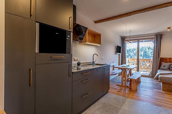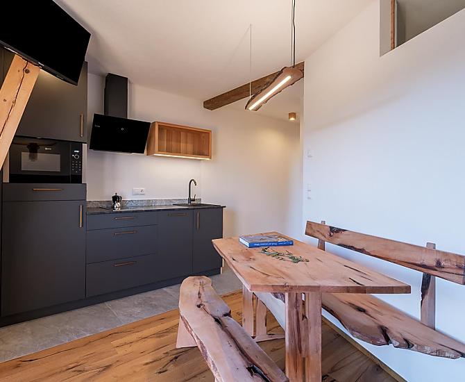 Przytulne, komfortowe i przesiąknięte światłem apartamenty w stylu od rustykalnego do nowoczesnego, zbudowane przez samego rolnika w jego „warsztacie”, wykonane głównie z drewna, znajdują się w wolnostojącym budynku gospodarczym na terenie
