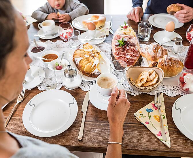 - Produkty z własnego gospodarstwa na śniadanie: speck, jajka, miód, dżemy, syrop, soki owocowe, suszone owoce, pieczywo, świeże owoce sezonowe