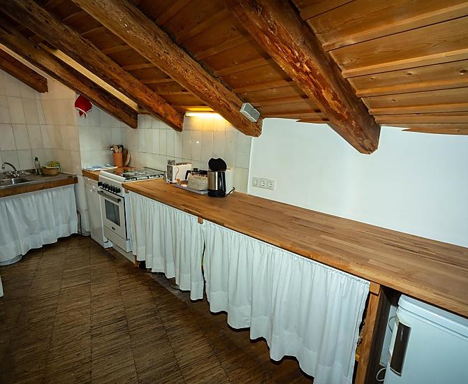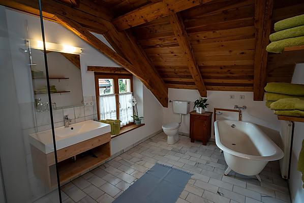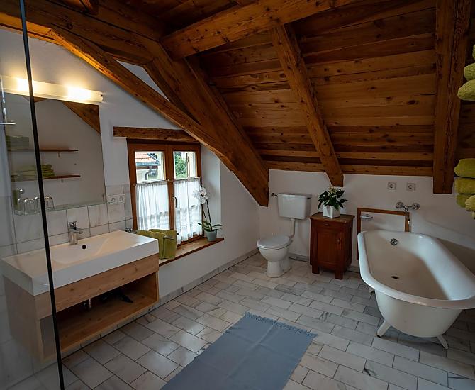 Nasze zabytkowe gospodarstwo ekologiczne Vill, którego poczatki siegaja XI wieku, znajduje sie w samym sercu naszej wioski i jest oddalone o 150 m od deptaka. Historyczny ogród gospodarczy i dziedziniec tworza zielona oaze pelna kwiatów, krzewów i drzew owocowych. To historyczne dziedzictwo tworzy duzy ogród w srodku wioski, który z miloscia nazywamy nasza mala oaza. Mamy cztery pieknie odrestaurowane mieszkania wakacyjne. Nasze mieszkania odzwierciedlaja historie naszego domu: wykorzystalismy historyczne elementy i nadalismy im nowe zycie. Nasz dom zostal odnowiony w sposób przyjazny dla budynków, a my przywiazalismy duza wage do historycznie poprawnego wykonania.