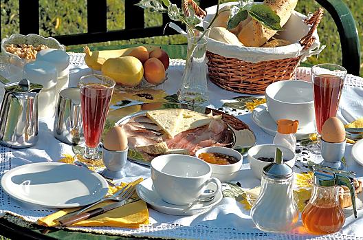 - Produkty z własnego gospodarstwa na śniadanie: mleka, jogurt, jajka, dżemy, syrop, soki owocowe, suszone owoce, herbaty ziołowe, chleb, pieczywo, świeże owoce sezonowe