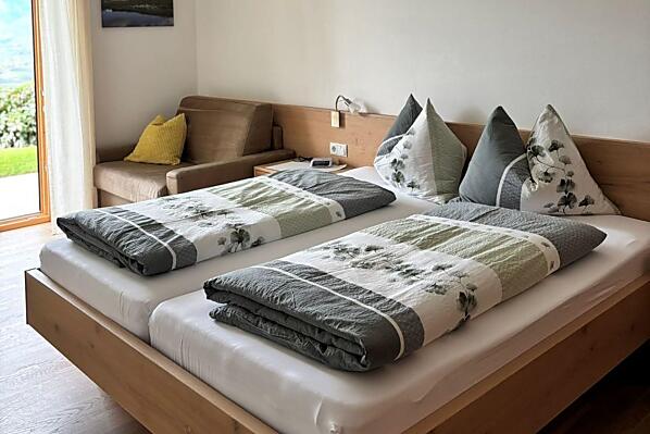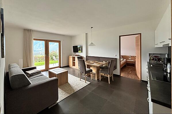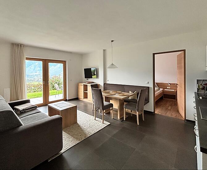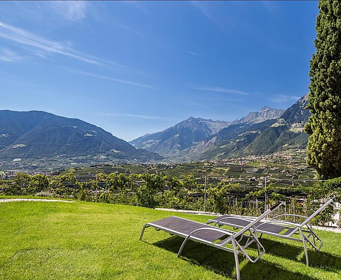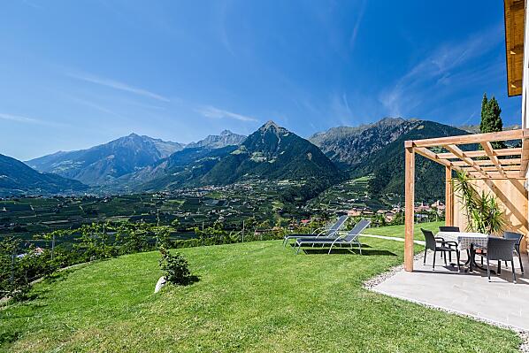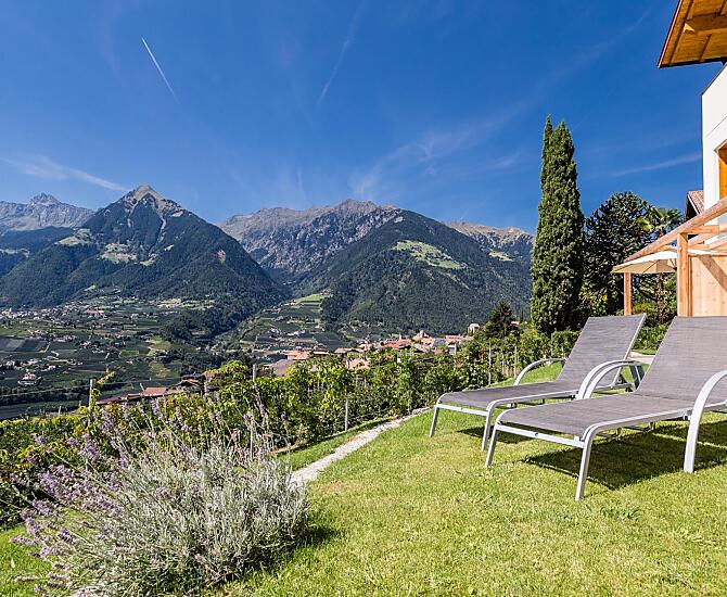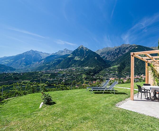 Nasze gospodarstwo położone jest w cichej i słonecznej okolicy na zboczu wzgórza w kierunku St. Georgen w Schenna. W środku własnych rzędów jabłoni znajdują się nasze mieszkania wakacyjne ze wspaniałym panoramicznym widokiem na okoliczne góry Burggrafenamt, a także uzdrowisko Merano i dolinę Etschtal. Łagodny klimat w połączeniu z niepowtarzalnym pięknem naszego alpejskiego krajobrazu zaprasza na liczne wycieczki górskie, wędrówki lub spokojne spacery po Schennie i okolicach. Wieczorem można wygodnie zakończyć dzień na tarasie przy lampce wina. Naturalność i tradycja Południowego Tyrolu w połączeniu z rodzinną gościnnością zagwarantują niezapomniane wakacje w naszym gospodarstwie w Schenna.