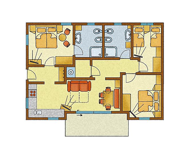 - salon (Piec kominkowy, WLAN, Zabawy, TV SAT, Ksiazki, Aneks kuchenny, Lodówka, Umeblowanie dla osób z niepelnosprawnosciami, Kacik zabaw)