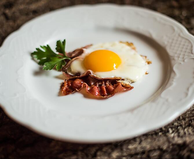 - Produkty z własnego gospodarstwa na śniadanie: mleka, jogurt, masło, speck, wędliny, jajka, dżemy, pieczywo, świeże warzywa sezonowe, świeże owoce sezonowe