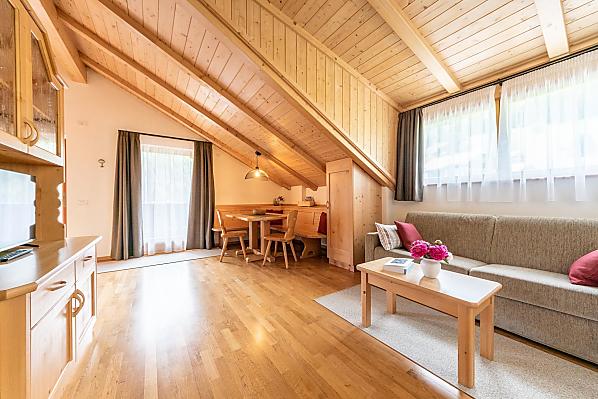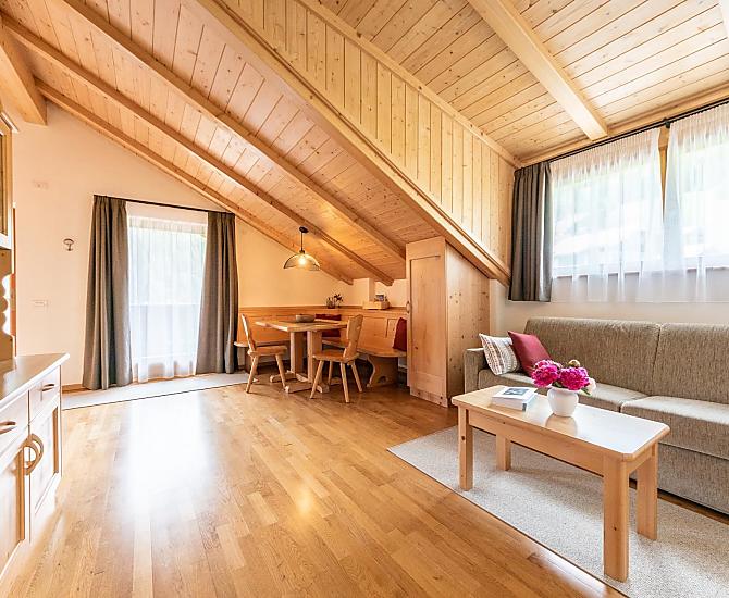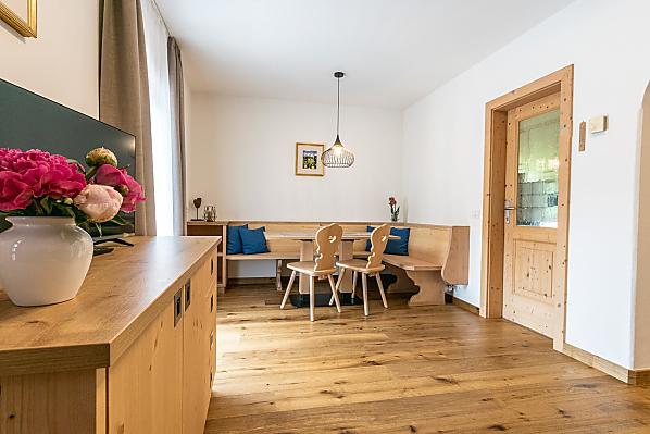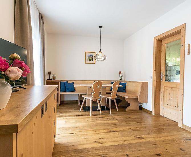Corjelhof, który jest w rodzinie od kilku pokolen, polozony jest wsród zielonych lak i lasów, a jego przytulne otoczenie zacheca do wypoczynku. W pieknej okolicy z panoramicznym widokiem na Peitlerkofel mozesz spedzic spokojne i relaksujace dni w bliskim kontakcie z natura, co nada Twoim wakacjom wyjatkowy charakter. Z niecierpliwoscia czekamy, by powitac Cie w naszym domu!