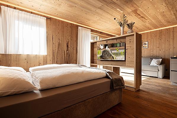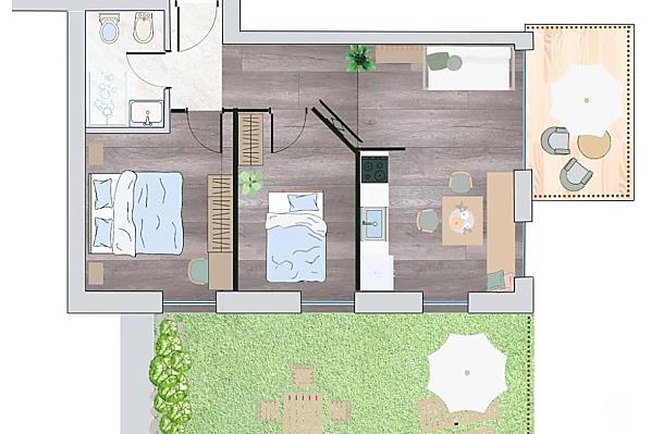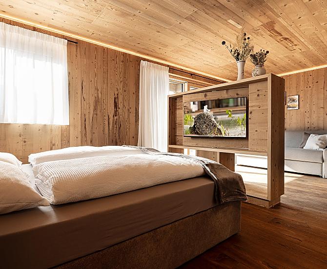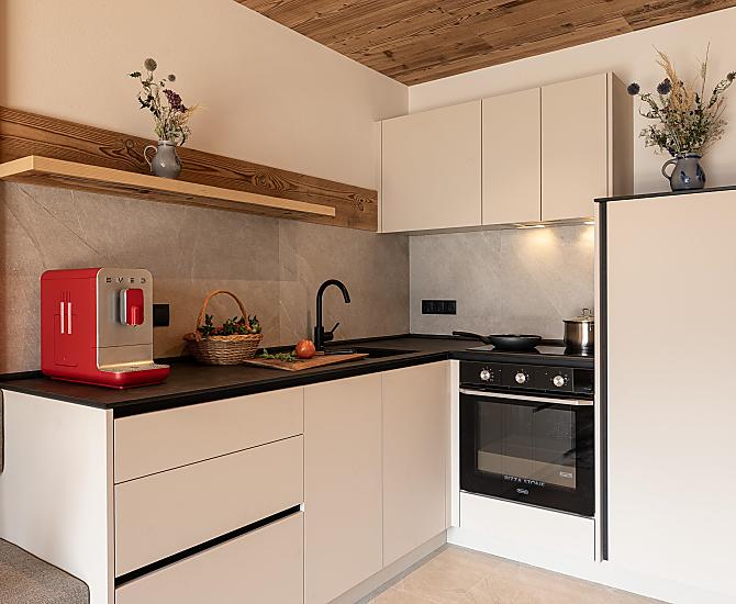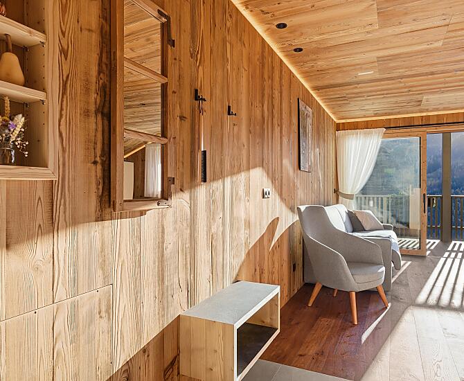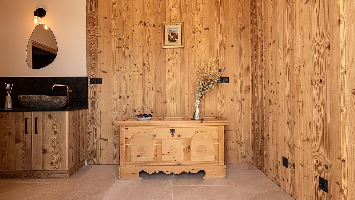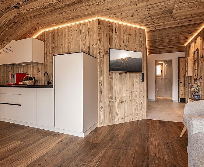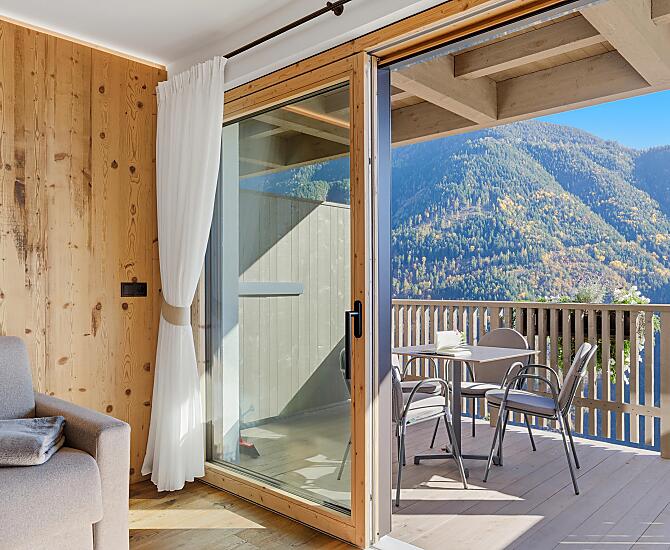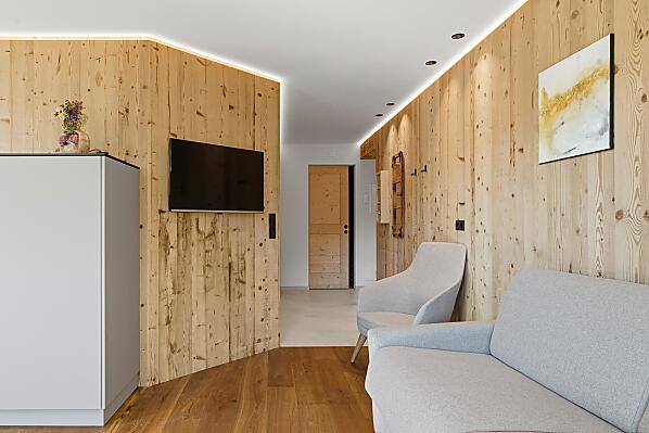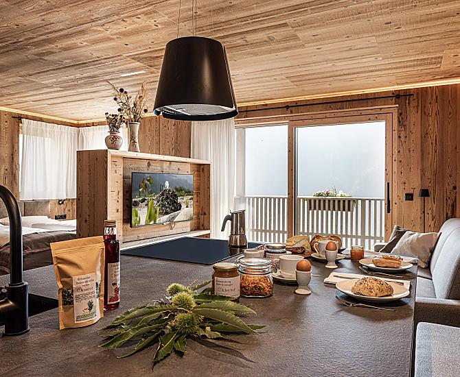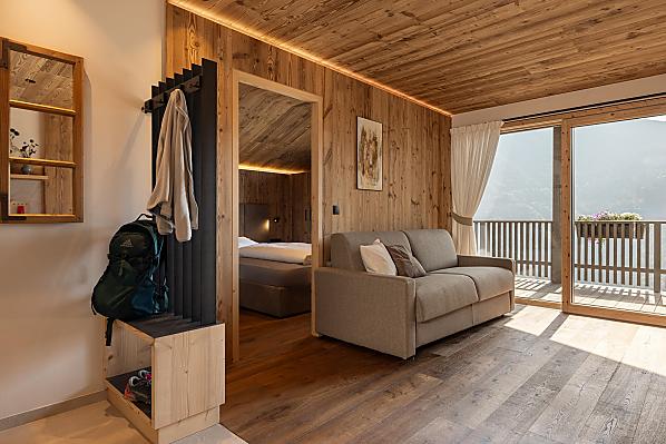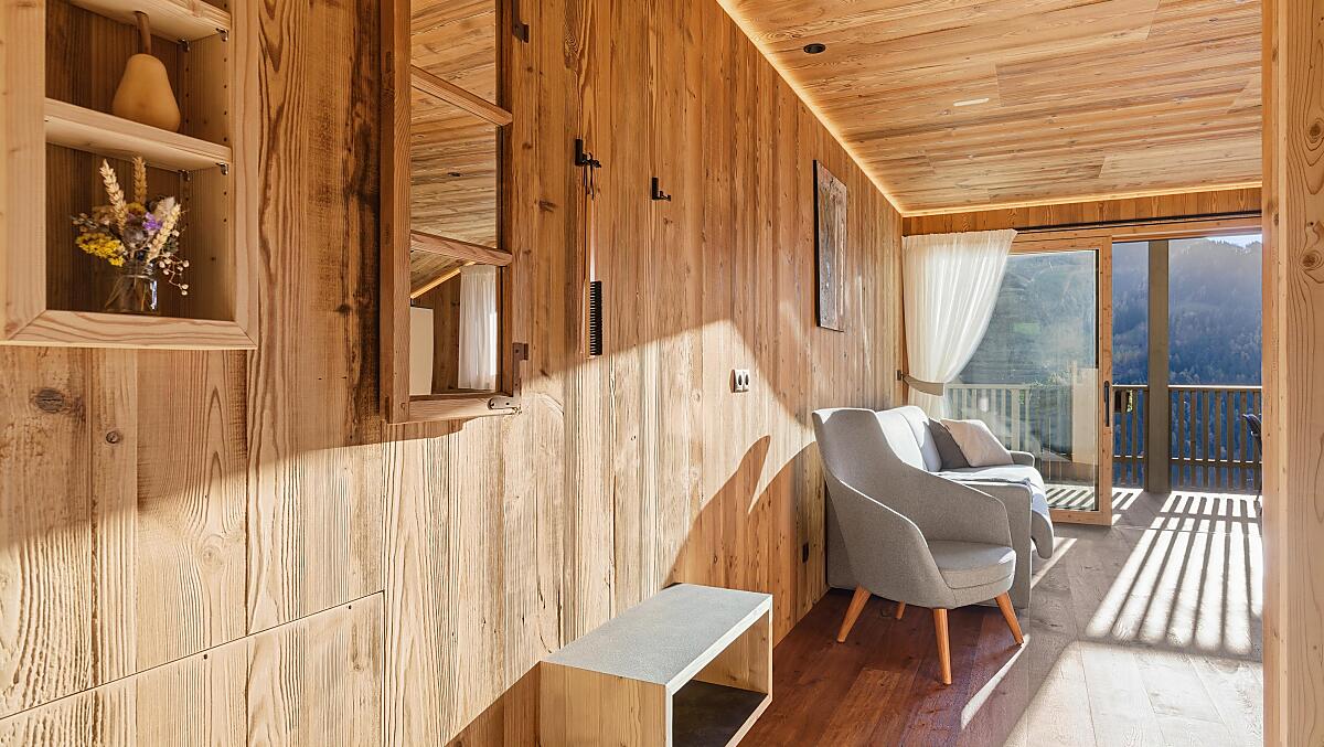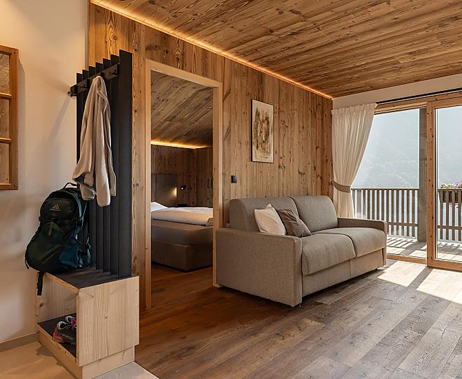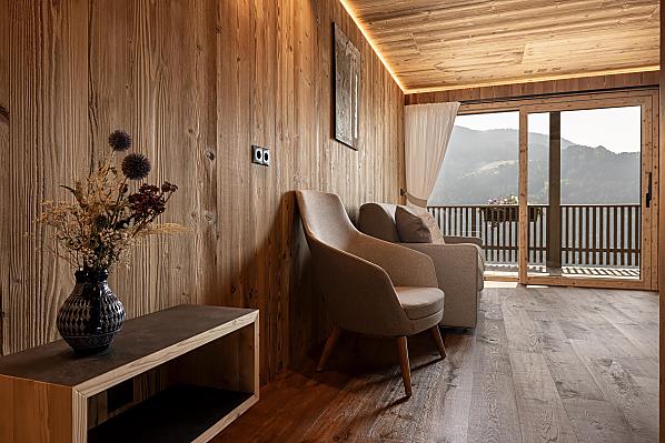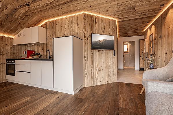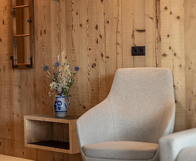 Stylowo urządzone apartamenty z prywatnym tarasem łączą w sobie nowoczesny komfort z alpejskim urokiem. Pięknie zaprojektowana przestrzeń zewnętrzna i ekskluzywne centrum wellness z sauną i pokojem relaksacyjnym zachęcają do odprężenia ciała i umysłu.