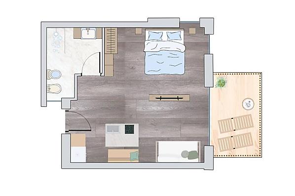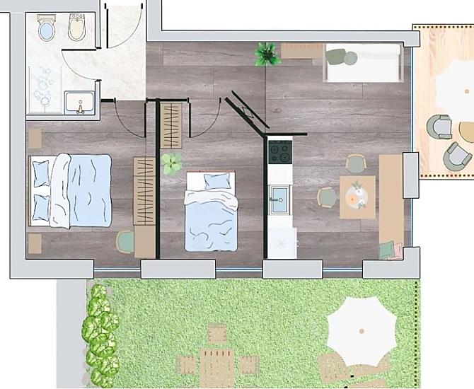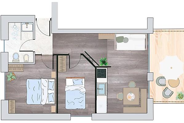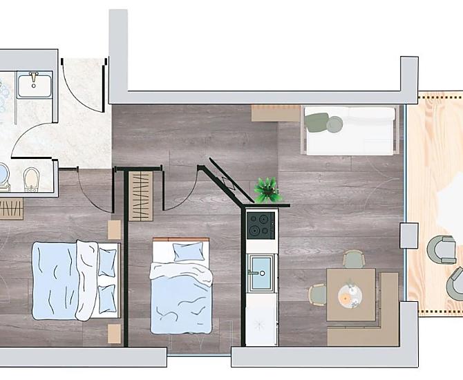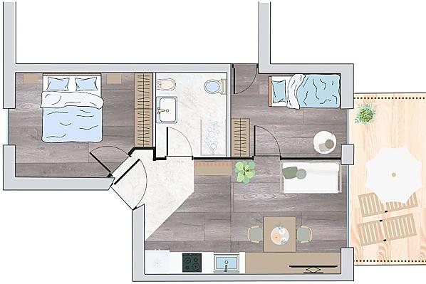 2-4 osób (2 stałych łóżek) 43m²
