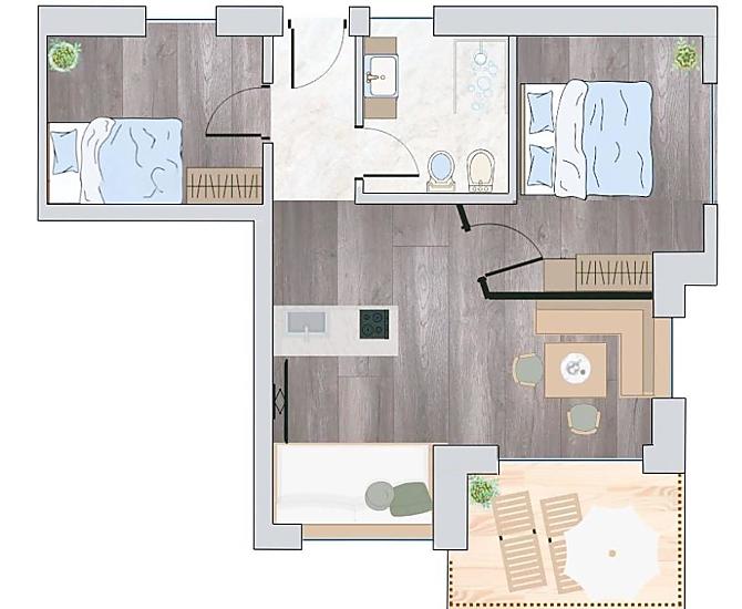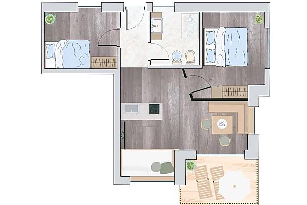 2-6 osób (4 stałych łóżek) 53m²