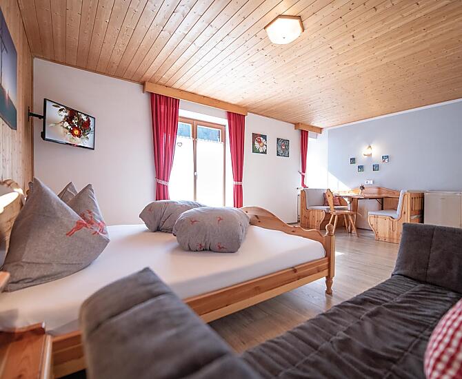 Nasze sloneczne i ciche gospodarstwo w dolinie Antholz jest idealnym miejscem na wakacje z dala od halasu. W naszym gospodarstwie znajdziesz bydlo, swinie, koty, kurczaki, kozy karlowate, owce, króliki i naszego psa Leo. Caly czas rodza sie mlode cieleta i kocieta, które uwielbiaja byc glaskane i karmione. Nasi mali goscie zawsze maja wiele radosci z biegania i zabawy na swiezym powietrzu. Oferujemy produkty rolne, takie jak mleko, jajka, soki, dzemy, domowy bekon i Kaminwurzen, a takze mieso z wlasnego inwentarza. Ponadto mozesz wybierac sposród róznych lokalnych specjalów w naszej wiejskiej tawernie lub korzystac z mieszkania wakacyjnego z czesciowym wyzywieniem. Ciesz sie zasluzonym urlopem na naszej farmie i rozpocznij codzienne zycie z nowa energia.