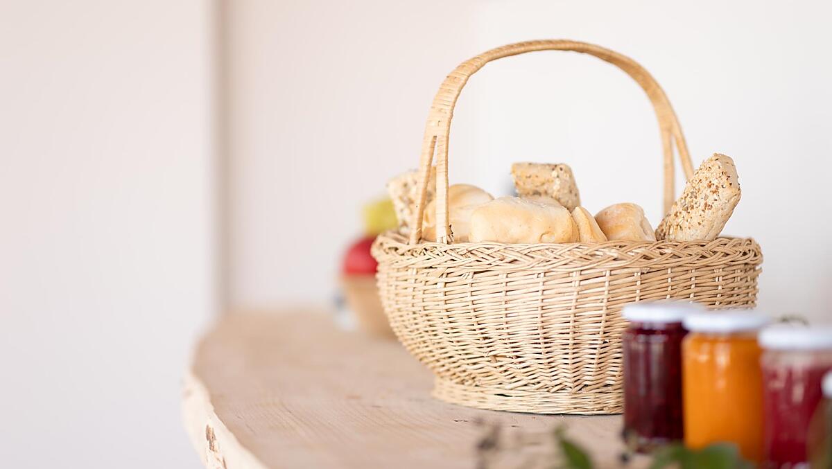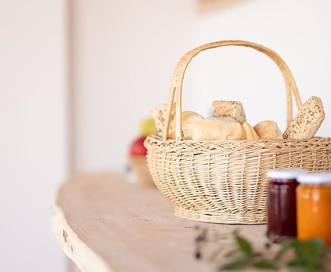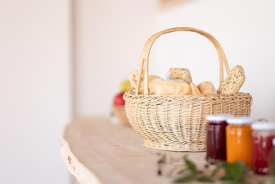 - Produkty z własnego gospodarstwa na śniadanie: dżemy, syrop, soki owocowe, przetwory, pieczywo, świeże owoce sezonowe