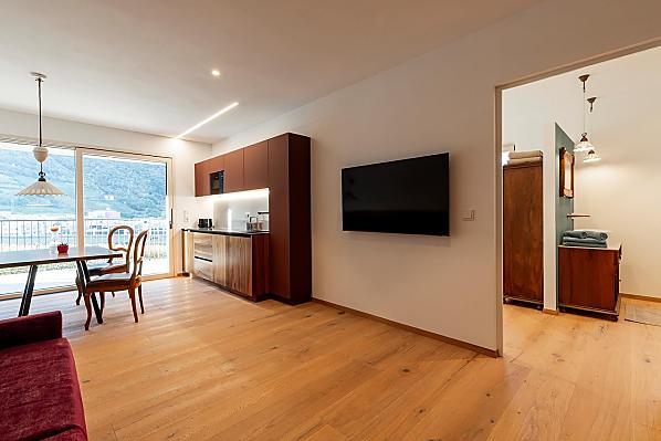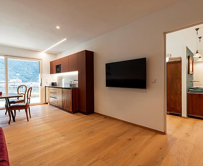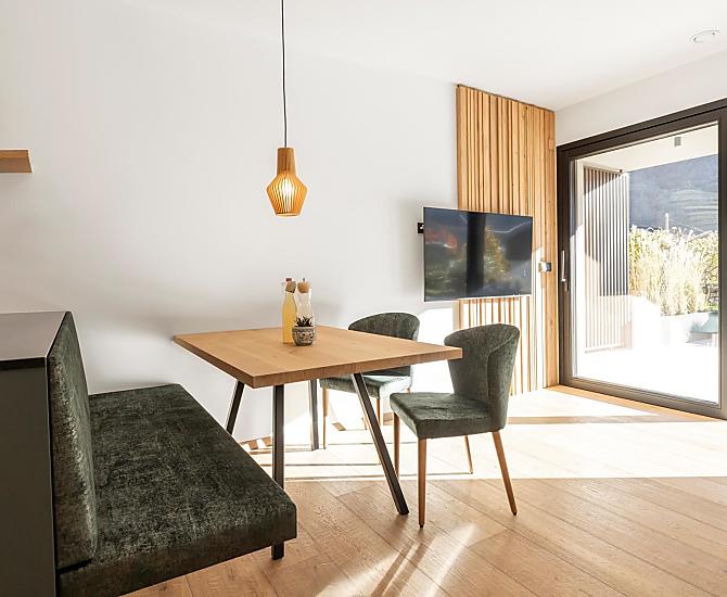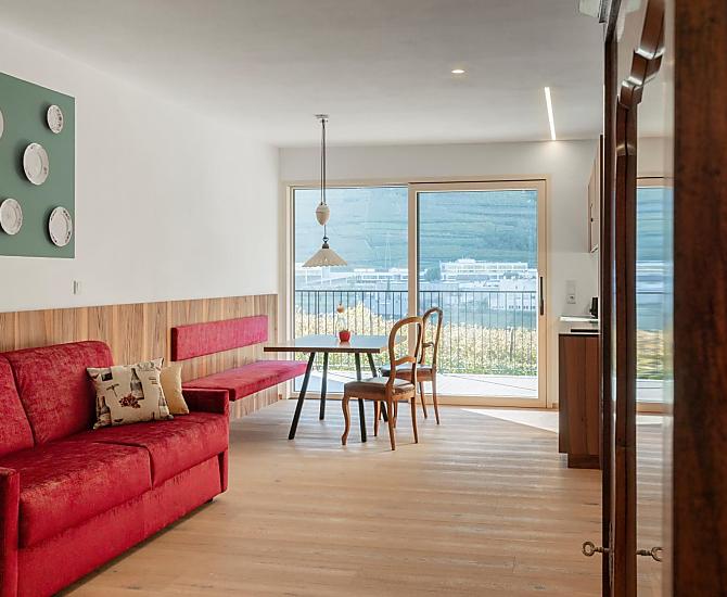 Miejsce na relaks, doświadczenie i naukę. Zamieszkaj pośród winnic w Bolzano-Rentsch. Czekają na Ciebie nowe, nowoczesne mieszkania wakacyjne z prywatną sauną i jacuzzi oraz wspaniałym widokiem na Rosengarten. Basen w ogrodzie zapewnia orzeźwiającą kąpiel. Życie na farmie toczy się wokół gospodarstwa, którym chętnie dzielimy się z naszymi gośćmi. Centralna lokalizacja sprawia, że nasze mieszkania wakacyjne w Bolzano-Rentsch są idealną bazą wypadową do spędzania wolnego czasu i wycieczek na łono natury.