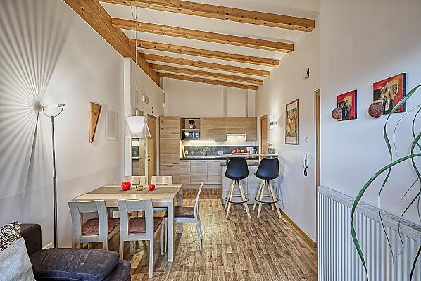 Osadzony w naturze, wśród naszych sadów jabłoniowych, relaks może rozpocząć się od razu po przyjeździe. Oferujemy cztery indywidualnie zaprojektowane mieszkania oraz nowo wybudowane w 2022 roku Apple Chalet z dużym tarasem i całorocznym, podgrzewanym jacuzzi na zewnątrz, inspirowane jabłkami - symbolem zdrowia i dobrego samopoczucia. Naszym celem jest, aby goście czuli się u nas jak w domu i mogli oderwać się od codzienności. Na naszych południowych balkonach można cieszyć się panoramicznym widokiem lub korzystać z grilla przed domem. Dla młodszych gości przygotowaliśmy plac zabaw z trampoliną, huśtawką, traktorem na pedały i piłkarzykami, gwarantujący codzienne przygody. Dodatkowo, nowością jest designerski basen odkryty z miejscem do opalania, idealny do ochłody i relaksu.
