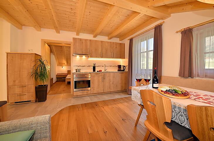 Nasze gospodarstwo znajduje się w St. Magdalena w pięknej dolinie Gsiesertal w Południowym Tyrolu na wysokości 1400 m n.p.m. w słonecznym miejscu i ze wspaniałym widokiem na Gsiesertal, okoliczne pastwiska alpejskie i Pragskie Dolomity. W naszym gospodarstwie są krowy, bydło, kozy, kurczaki, króliki i koty. Gospodarstwo zostało założone w XVI wieku i od tego czasu pozostaje w rękach tej samej rodziny jako gospodarstwo dziedziczone. W 2014 roku gospodarstwo zostało przebudowane z wielką dbałością o szczegóły. Duży nacisk położono na tradycyjną metodę budowy.