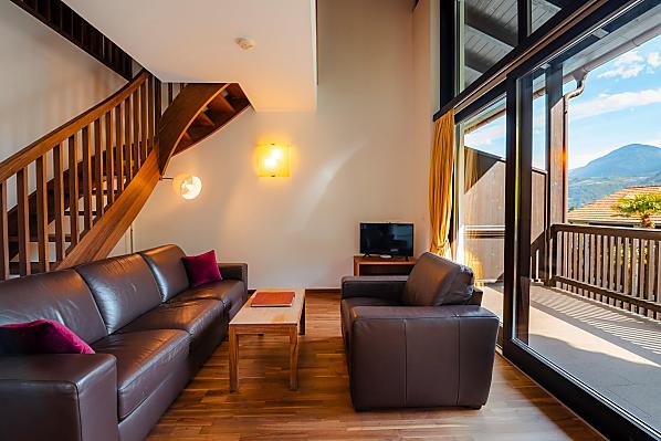 Sloneczny apartament na 1. pietrze wychodzacy na poludnie. Nowoczesne wyposazenie, proste linie oraz naturalne materialy: cieple i regionalne. Podlogi z litego drewna w sam raz do chodzenia boso i zapach limby. Duzo miejsca w apartamencie i na tarasie. Duze panoramiczne okna, z których roztacza sie cudowny widok na doline oraz góry.