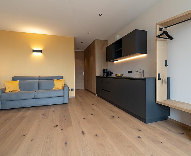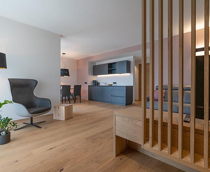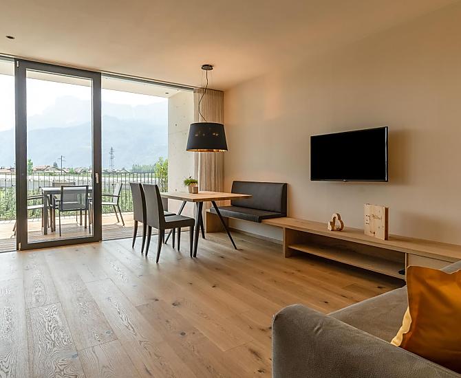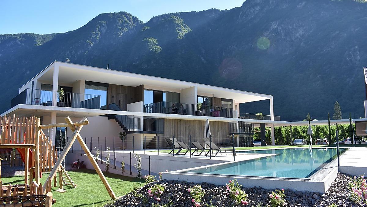 - Zapraszamy na wakacje do naszego nowo wybudowanego gospodarstwa zajmujacego sie uprawa owoców w spokojnej, ale centralnej lokalizacji. Nowoczesna architektura i stylowe wyposazenie oparte sa na prostych liniach oraz naturalnych materialach i kolorach. Panoramiczne okna jasnych i klimatyzowanych apartamentów oferuja przepiekny widok na doline Etschtal i okoliczne góry. Zrelaksuj sie na prywatnym, przestronnym tarasie lub w duzym ogrodzie. Zanurz sie w 20-metrowym basenie ze slona woda i ciesz sie wieloma korzysciami dla rowerzystów. Nasz naturalny plac zabaw to idealne miejsce dla rodzin, ale równiez baza dla aktywnosci sportowych, kulturalnych i rozrywkowych. Jestesmy Christian i Gaby i prowadzimy nasza farme jablek razem z córkami Anna i Evi oraz mama Hilde, dbajac o dobre samopoczucie gosci.