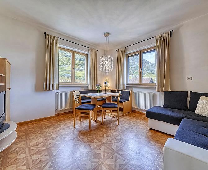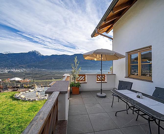 W cudownie spokojnej i słonecznej okolicy, a jednocześnie niedaleko Cermu i Marlengo, na wysokości 360 m n.p.m. znajduje się nasze rodzinne gospodarstwo. Od pokoleń naszą wielką pasją jest uprawa owoców i winorośli. Na życzenie chętnie organizujemy wycieczki po sadzie i winnicy oraz zapraszamy do udziału w życiu naszego gospodarstwa.