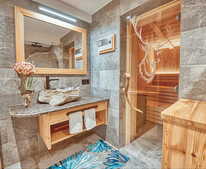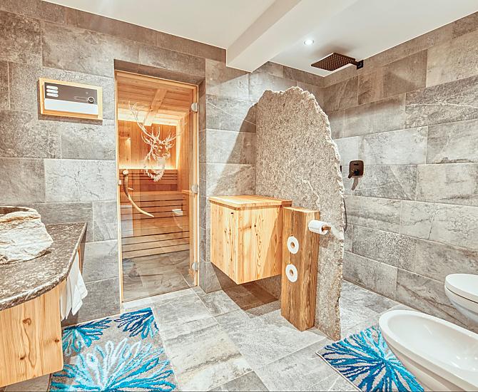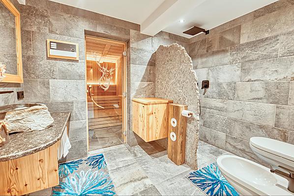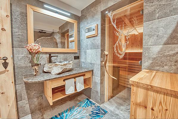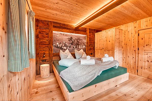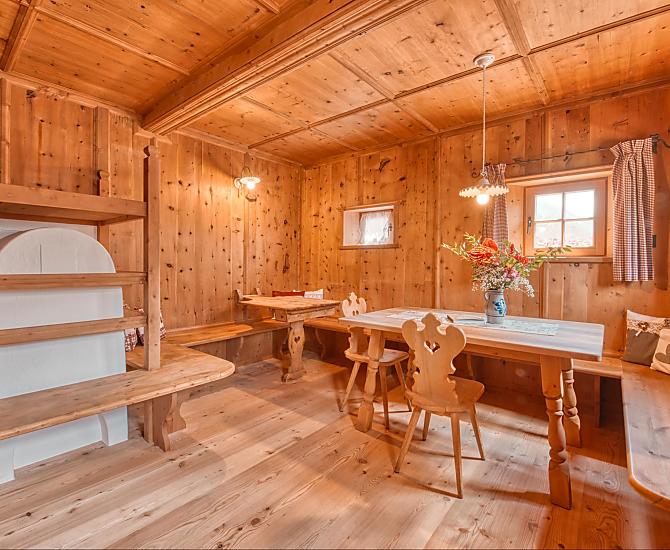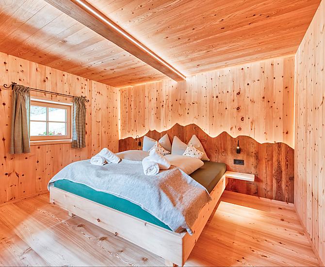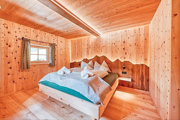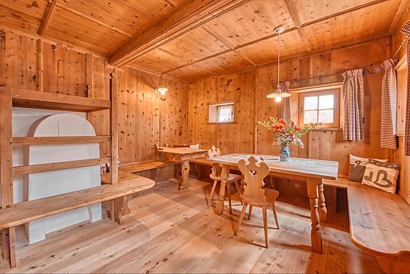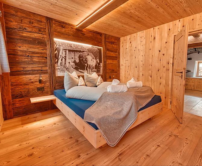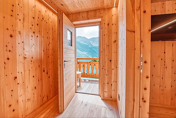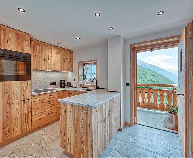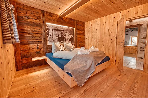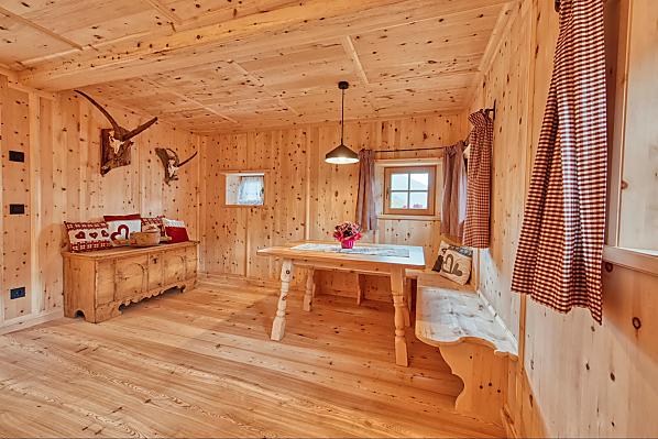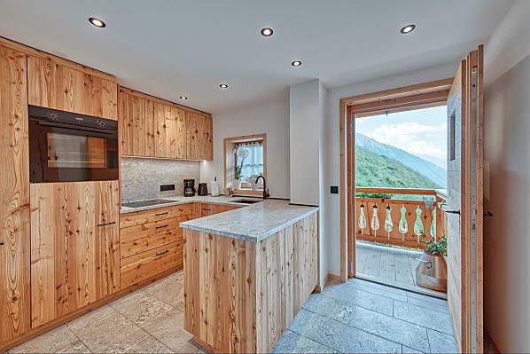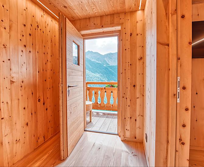 Dom wakacyjny, w którym mieszczą się oba mieszkania, został zbudowany w technice z bali z modrzewia z doliny Schnals. Wnętrza urządzono z dbałością o szczegóły, wykorzystując wysokiej jakości meble z drewna sosny limbowej oraz naturalne materiały. Poniżej domu znajdują się plac zabaw dla dzieci oraz różne miejsca do wypoczynku – zarówno leżaki, jak i siedziska.