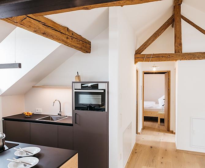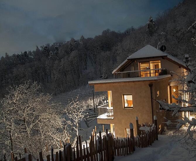 Firmeleinhof w Eppan an der Weinstraße od wieków stoi jak forteca. Pierwsza udokumentowana wzmianka pochodzi z 1175 roku, kiedy to zródla mówia o malym zamku Pedemunt. Dzis Firmeleinhof jest typowym gospodarstwem winiarskim Überetsch i przytulnym domem wakacyjnym, otoczonym mnóstwem zieleni, strzezonym przez Zamek Boymont i z pieknym widokiem na okolice. Spaceruj po naszym lesie i winnicach lub po prostu zrelaksuj sie na trawniku i posluchaj spiewu ptaków. Zarówno mlodzi, jak i starsi ciesza sie spokojem i relaksem, jakie oferuja wakacje na farmie. Firmeleinhof oferuje wyjatkowa atmosfere: Z natura na wyciagniecie reki, zatrzymaj sie w mieszkaniach, które lacza w sobie tradycje i nowoczesny design. W czesci sypialnej poczuj spokój, jaki daja grube sciany, a w czesci dziennej, dzieki szerokim przeszkleniom, popatrz na góry Poludniowego Tyrolu.
