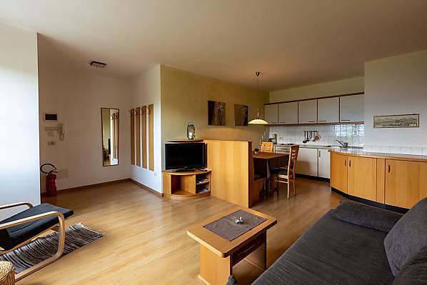 Nasze gospodarstwo zajmujace sie uprawa jablek i winorosli oferuje wspanialy widok na panorame kotliny merano. Lezy na plaskowyzu na wysokosci 630 m n.p.m. w spokojnej i sielskiej okolicy. Srednie góry wokól tisens juz dawniej byly popularne ze wzgledu na lagodny klimat – stad tyle zamków. Lokalizacja sprzyja wspanialym wedrówkom bezposrednio z gospodarstwa. Jesli po powrocie chcesz nabrac sil i odswiezyc sie, skorzystaj z naszego naturalnego stawu kapielowego lub po prostu odpocznij jeden dzien z dobra ksiazka z naszej biblioteki. Do merano i bolzano dotrzesz w pól godziny samochodem lub pociagiem. Mamy tez wiele lesnych szlaków, które mozesz zwiedzac rowerem elektrycznym – chetnie Ci doradzimy. W bliskim sasiedztwie (10 minut pieszo) znajduje sie piekny kosciól sw. Krzysztofa lub nieco dalej (godzinny spacer) kosciól sw. hipolita z 360-stopniowa panorama, do którego prowadzi sciezka kontemplacyjna – miejsce to jest swietnym punktem widokowym.