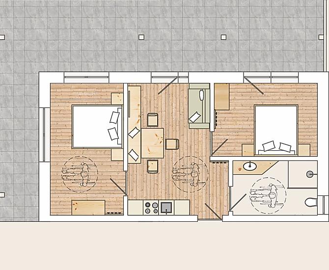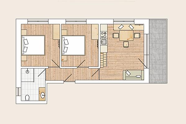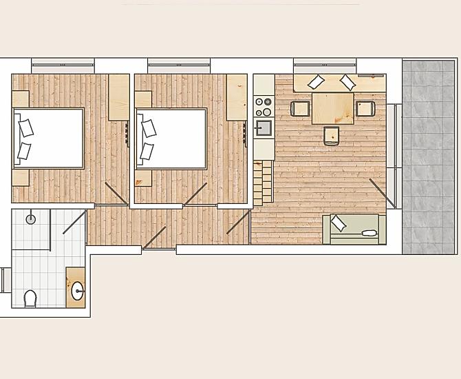4 apartamenty: 2-4 osób, 2-5 osób, 2-6 osób