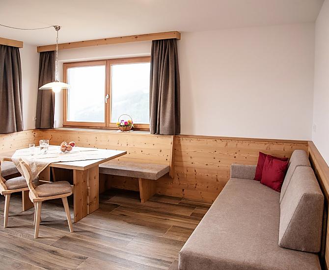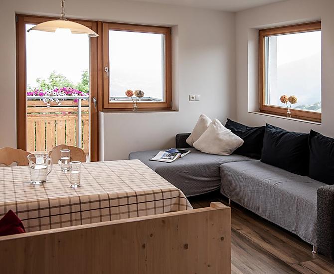 Nasze apartamenty wakacyjne znajdują się na słonecznym płaskowyżu w Meransen na wysokości 1353 m n.p.m. i oferują Państwu fantastyczne panoramiczne widoki na dolinę Pustertal, Brixen i okolicę, Dolomity oraz naszą lokalną górę „Gitschberg”. Cieszcie się Państwo relaksującymi dniami!