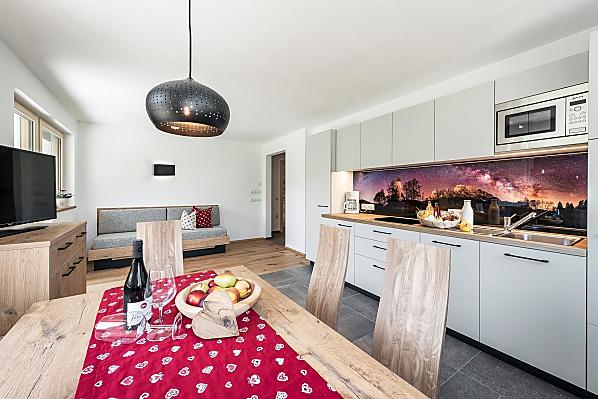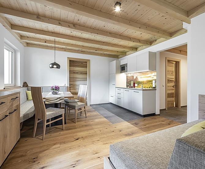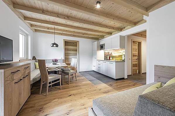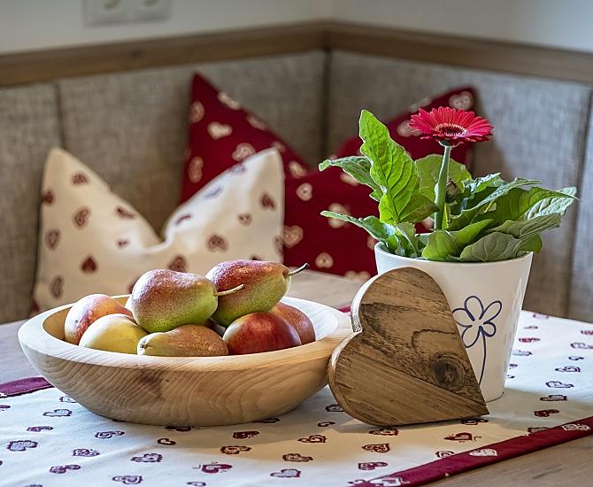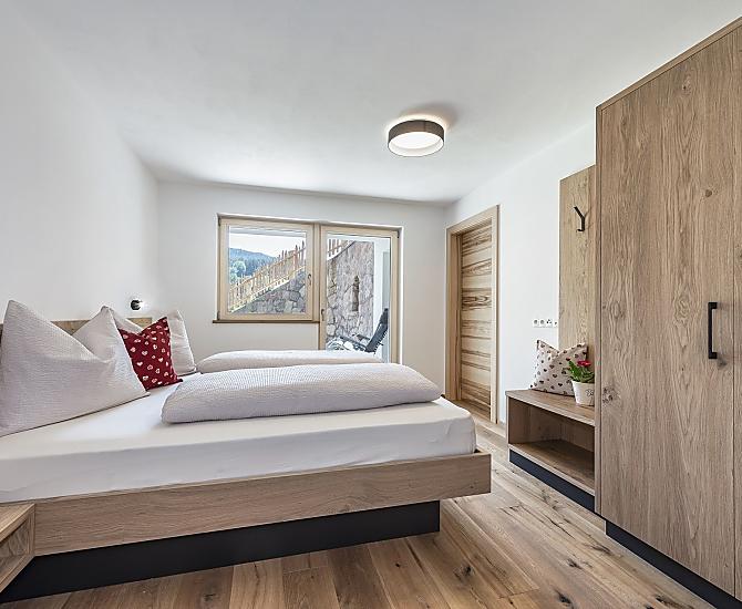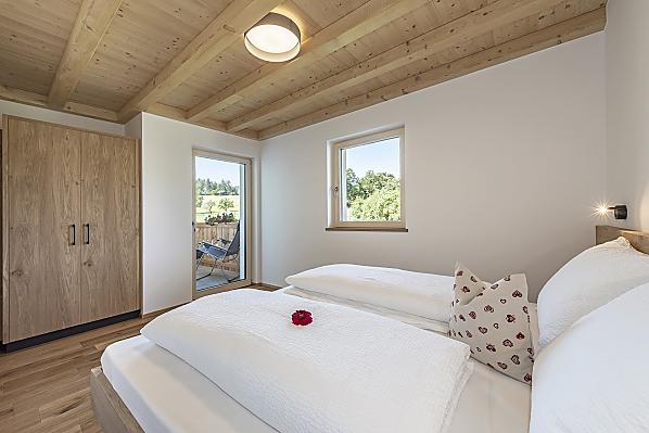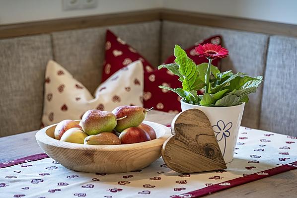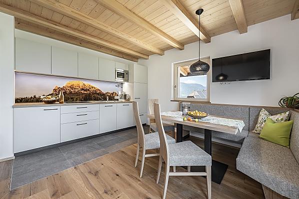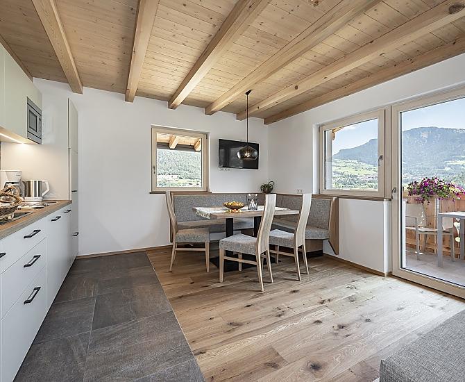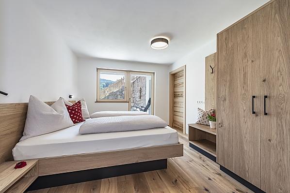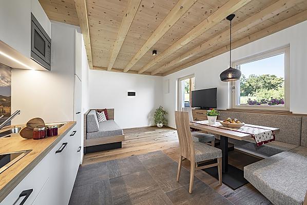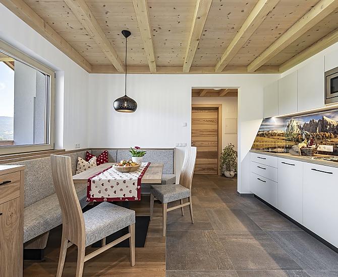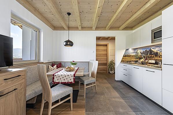 - Nasze gospodarstwo to mala rodzinna farma prowadzona z miloscia i pasja przez piecioosobowa rodzine: Anni i Huberta z trójka dzieci Matthiasem, Simonem i Fabianem. Oprócz zwierzat gospodarskich, jagód oraz ogrodu z warzywami i ziolami, to wlasnie piekna przyroda napelnia nas entuzjazmem do pracy. W naszym gospodarstwie zyje wiele zwierzat: krowy i cieleta, kury i indyki, koty i pszczoly – tutaj zawsze cos sie dzieje! Dzieci szczególnie lubia odwiedzac zabudowania gospodarskie i uwielbiaja bliski kontakt ze zwierzetami. Zarówno mlodych jak i starszych fascynuja kolorowe karpie japonskie w naszym stawie. Najmlodsi moga takze korzystac z placu zabaw w naszym ogrodzie: budowac zamki z piasku z tata, wzbijac sie w niebo na hustawce lub zjezdzac ze zjezdzalni – to dopiero jest zabawa! Mozna tez po prostu nic nie robic, tylko cieszyc sie spokojem oraz widokiem na masyw Schlern.