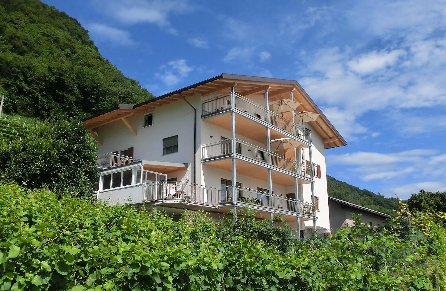 Gospodarstwo sadowniczo-winiarskie w przepięknej, panoramicznej lokalizacji. Nowe, słoneczne apartamenty wakacyjne w różnych rozmiarach – dla dwóch do sześciu osób. Wszystkie apartamenty posiadają duży balkon z widokiem na panoramę okolicy.