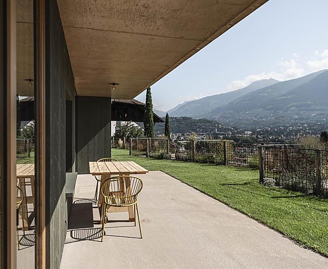 Na wsi... cichy i ustronny w pagórkowatym krajobrazie Marlengo, a jednoczesnie w zasiegu reki kulturalne miasto Merano. Nowo wybudowane mieszkania z przestronnymi tarasami sa polozone w srodku naszych winnic i sadów. Nowoczesna architektura, stare meble wiejskie, duzo drewna i przytulne pokoje w kazdym mieszkaniu. A na zewnatrz - ziola i kwiaty o wszystkich swoich kolorach i zapachach, podczas gdy Ty bedziesz sie relaksowal na tarasie lub jadl przytulne sniadanie obok naszego ogrodu ziolowego. A moze wolisz zanurzyc sie w basenie i podziwiac zapierajace dech w piersiach widoki na przyleglym trawniku do opalania. Niezaleznie od tego, co wybierzesz - znajdziesz miejsce, które odzwierciedla nas i nasz sposób zycia, laczac godna wiejska codziennosc z niekonwencjonalna nowoscia. Miejsce, w którym czujesz sie dobrze wszystkimi zmyslami i w którym kazdy znajduje swoja wlasna przestrzen.