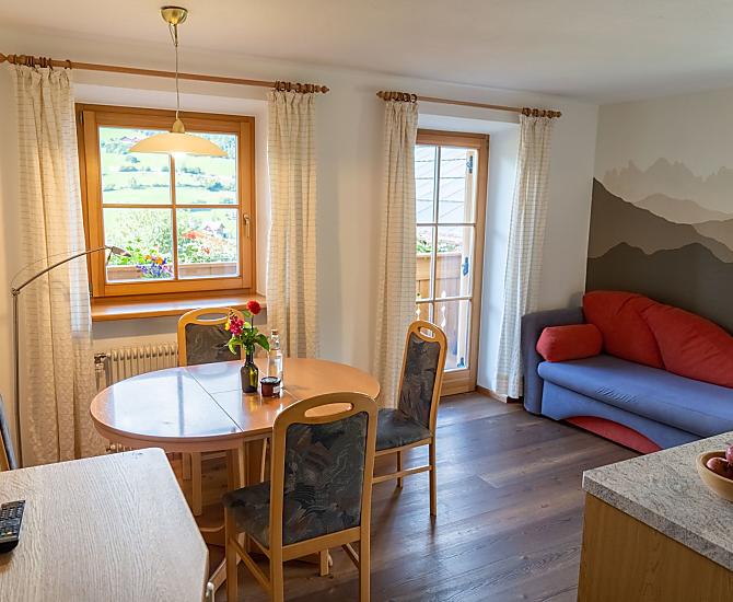 Odkryjcie Państwo Ganoihof – spokojne miejsce wypoczynku pośród natury. Nasze ekologicznie prowadzone gospodarstwo położone jest na skraju lasu, w malowniczej dolinie dolomitowej Villnöss, na wysokości 1100 metrów n.p.m., otoczone łąkami i drzewami, z dala od hałasu i pośpiechu – a jednak zaledwie krok od centrum miejscowości St. Peter. Stawiamy na zrównoważoną gospodarkę i bliski naturze sposób pielęgnacji, aby zapewnić autentyczny, przyjazny środowisku i spokojny wypoczynek. Wokół naszego gospodarstwa znajdują się obszerne, zadbane tereny do zabawy i relaksu. Do dyspozycji Gości jest pięć przytulnych apartamentów, oferujących miejsce dla par, rodzin i grup.