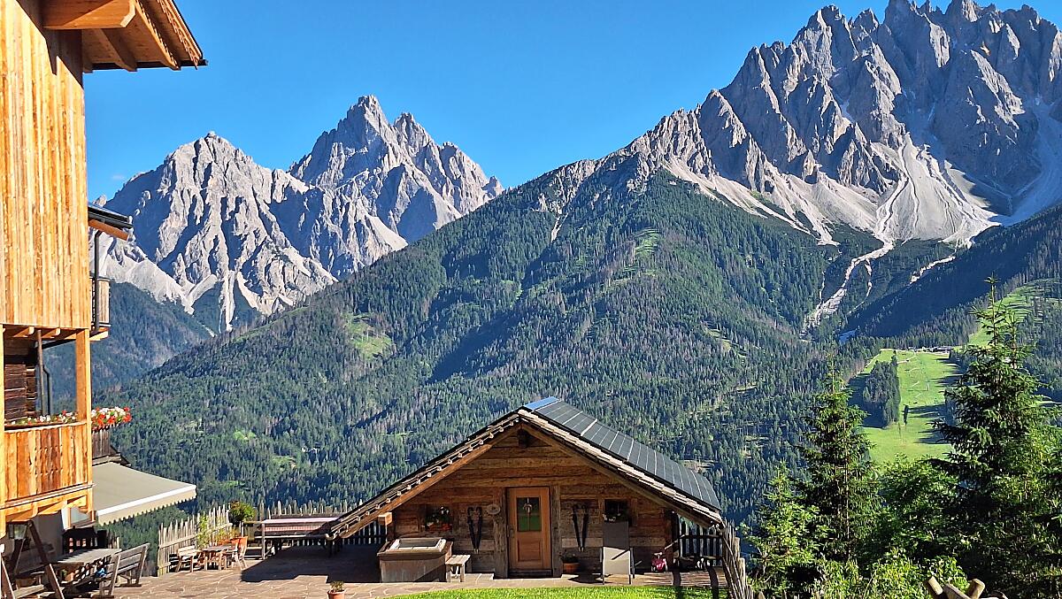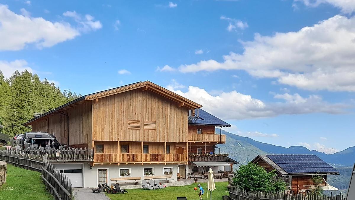 1 rustykalne gospodarstwo górskie, polozone wysoko nad dolina, na wysokosci 1500 m n.p.m., z majestatyczna panorama 30 gosci (przyjaciól), nie wiecej, 5 kwiatów z zywym inwentarzem, z certyfikatem ekologicznym: Jedyny w Poludniowym Tyrolu Nasz zabytkowy dom zostal z wielkim sercem i kunsztem odrestaurowany i dostosowany do wspólczesnych wymagan. Charakter zabytkowej budowli zostal zachowany z wielkim szacunkiem. Komfort zostal osiagniety dzieki ekologicznie wartosciowemu i wrazliwemu budownictwu.