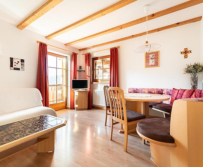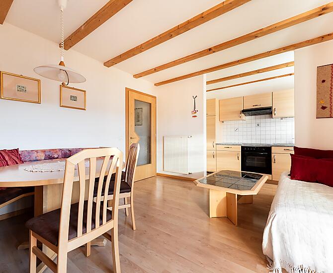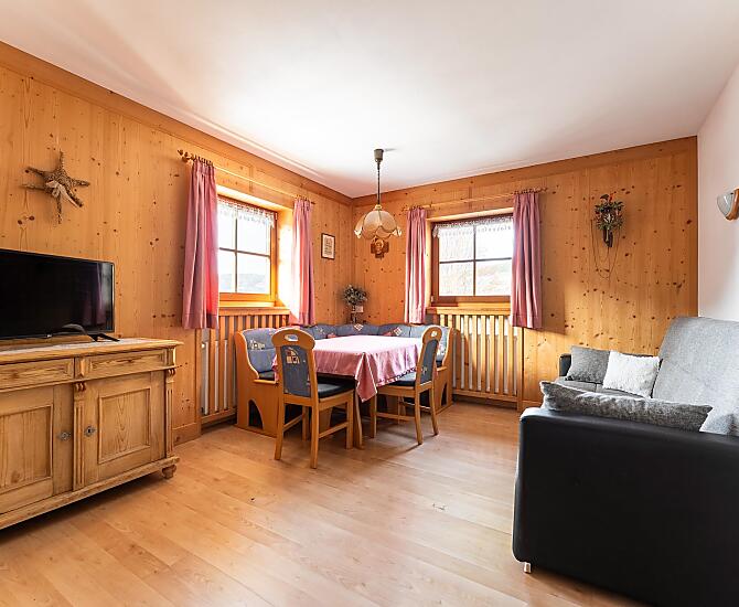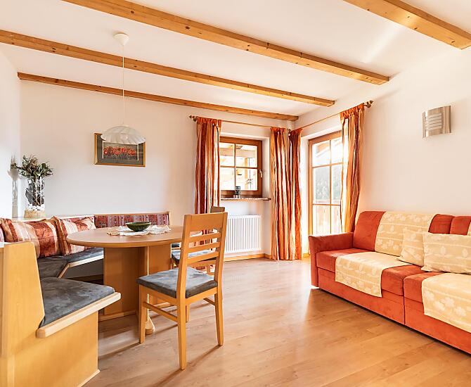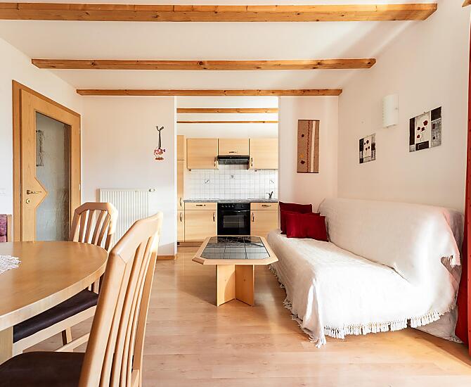 Nasza farma jest malym gospodarstwem prowadzonym przez dwa pokolenia. Strome górskie laki sa koszone dla bydla w stajni, co pozwala zachowac wyjatkowy krajobraz. Oprócz bydla mlecznego opiekujemy sie takze mlodym bydlem i naszymi malymi wspólmieszkancami. Koty, króliki i kozy sa jej czescia. Na sniadanie nasi goscie moga skosztowac swiezego, nieprzetworzonego mleka, a takze warzyw i jagód z naszego wlasnego ogrodu. Jesli jest to interesujace, kazdy, kto ma ochote, moze równiez pomóc w róznych pracach na farmie. Farma jest polozona w slonecznym miejscu. Jesli nie chcesz spotkac zadnej duszy, jest to mozliwe. Ale nie musisz jechac daleko, zeby wybrac sie na wedrówke, wycieczke rowerowa i cos zjesc. Czy to do Val Gardena, czy do Sieser Alm, czy do Völser Weiher na kapielisko - wszystkie te miejsca sa szybko osiagalne.