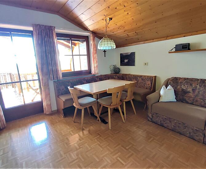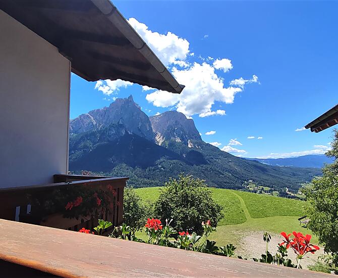 Nasze gospodarstwo jest polozone na wysokosci okolo 1260 m n.p.m., wsród fantastycznego górskiego krajobrazu i czystego powietrza, w bardzo slonecznym i spokojnym miejscu z imponujaca panorama masywu Schlern. Mozesz rozejrzec sie po Kotlinie Bolzanskiej az do Rittner Horn, Gór Mendelskich, Texelgruppe, a przy dobrej pogodzie takze do Gór Ortler. Mozesz doswiadczyc zycia na farmie z pierwszej reki w domowym zaciszu. Sercem naszej farmy sa liczne zwierzeta hodowlane, które szczególnie ciesza oczy dzieci. W naszym gospodarstwie sa krowy, cieleta i mlode bydlo, swinie (czasem prosieta), dwa konie, kury (czasem kurczaki), koty i pies. Mamy tez duzy ogród warzywny i ziolowy oraz produkujemy rózne produkty rolne.
