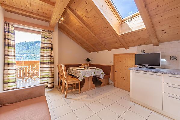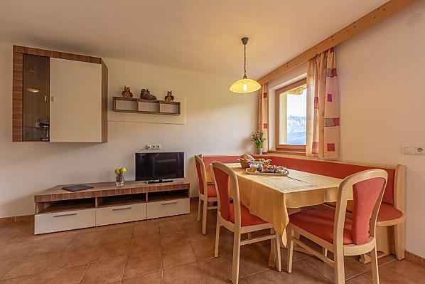Serdecznie witamy na wakacjach na farmie w St. Martin in Thurn, małej wsi w dolinie Gadertal. Położony na słonecznym stoku, na wysokości 1450 metrów, nasz gospodarstwo Gscnara oferuje fantastyczny widok na otaczające góry, m.in. Peitlerkofel i Kreuzkofel. Pośród łąk i lasów, z dala od hałasu i ruchu ulicznego, możesz cieszyć się spokojem i ciszą otaczającej przyrody. Nasza farma przy Kronplatz jest idealną oazą wypoczynku dla Twoich rodzinnych wakacji w Południowym Tyrolu. Oprócz zwierząt gospodarskich, takich jak krowy, kury, świnie i pszczoły, na naszej farmie mieszka także wiele innych zwierząt, zarówno dwu-, jak i czworonożnych, takich jak kozy, osły, króliki i koty.