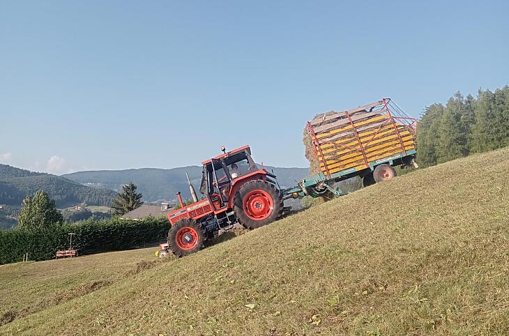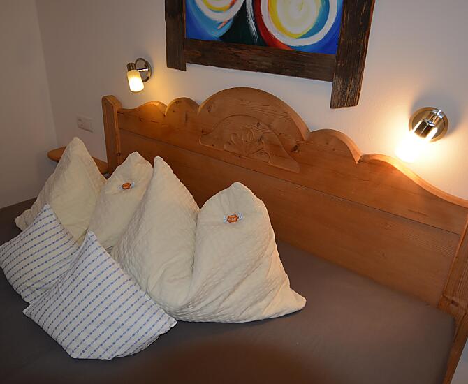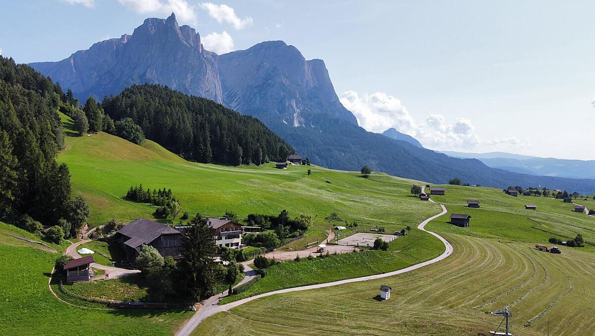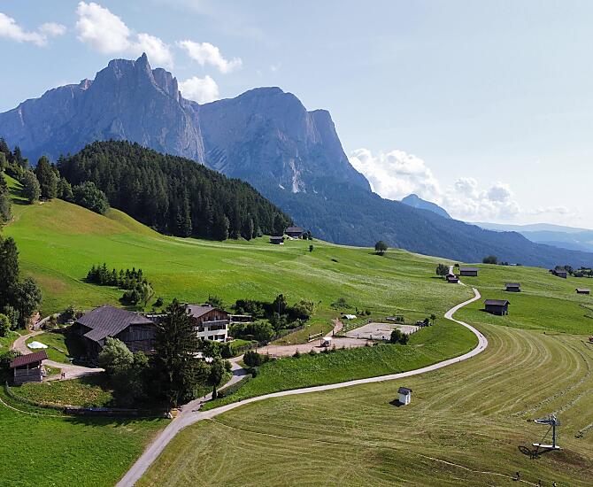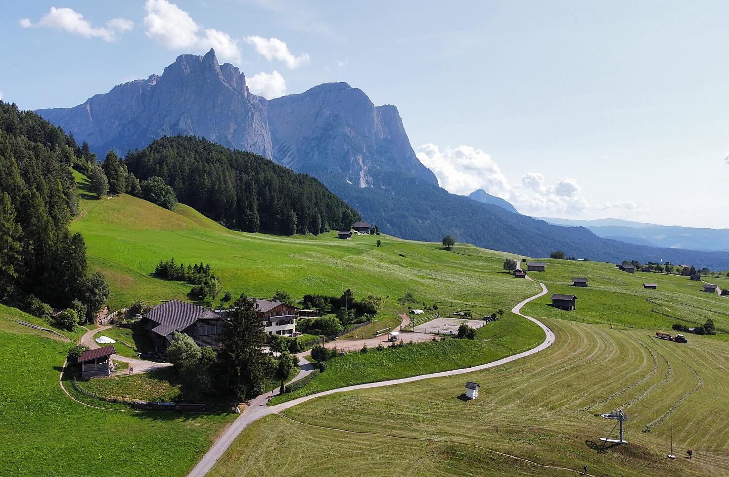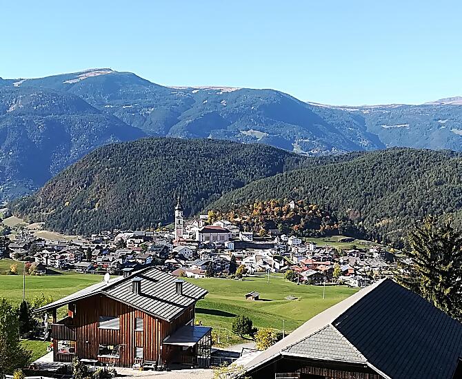 Nasze gospodarstwo położone jest na wysokości 1100 m n.p.m., w zacisznym miejscu na skraju lasu, z przepięknym widokiem na Kastelruth. Hodujemy owce, konie i kury. Mieszkają z nami również koty Theo i Nelli, a także osiem koni i dziesięć owiec.