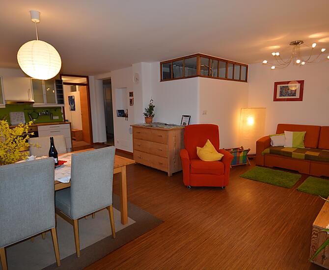Z widokiem na Alpy, ten apartament wakacyjny jest doskonałym miejscem na Państwa pobyt. Apartament składa się z salonu z rozkładaną sofą dla dwóch osób, w pełni wyposażonej kuchni, sypialni z podwójnym łóżkiem oraz łazienki.