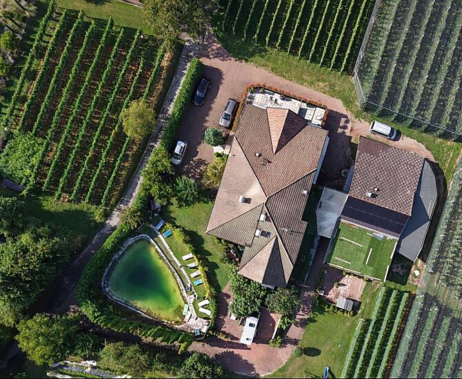 Nasze gospodarstwo znajduje sie w Schreckbichl kolo Girlan, okolo 1,5 km od centrum wsi. Spedz wakacje w spokojnym i slonecznym miejscu, w otoczeniu naszych jabloni i winorosli, bezposrednio na skraju lasu. Przyjemne ochlodzenie w naszym stawie kapielowym lub na trawniku do opalania to czysty relaks po pieknej wedrówce lub wycieczce rowerowej. Dla dzieci przygotowano hustawki, piaskownice i mnóstwo miejsca do gry w pilke i biegania.
