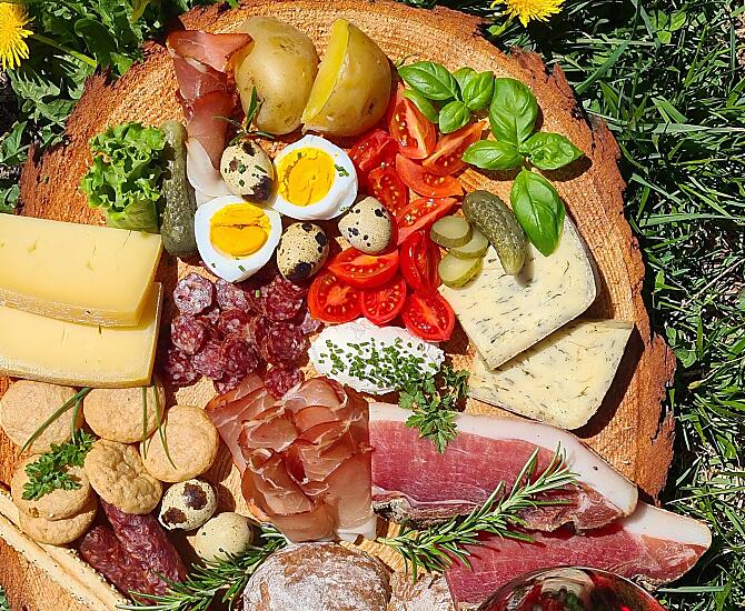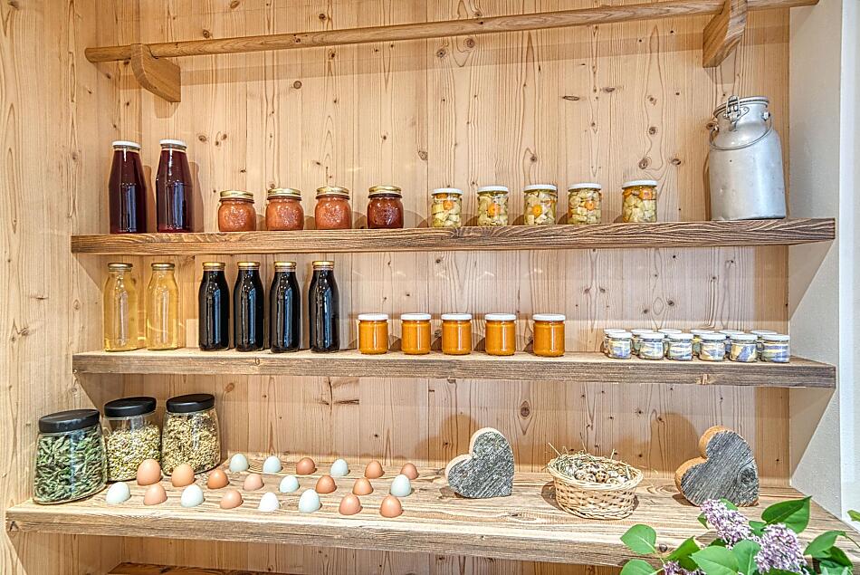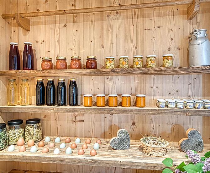 - Produkty z własnego gospodarstwa na śniadanie: mleka, jogurt, ser, jajka, dżemy, syrop, galaretki, przetwory, herbaty ziołowe, przyprawy ziołowe, pieczywo, świeże warzywa sezonowe, świeże owoce sezonowe