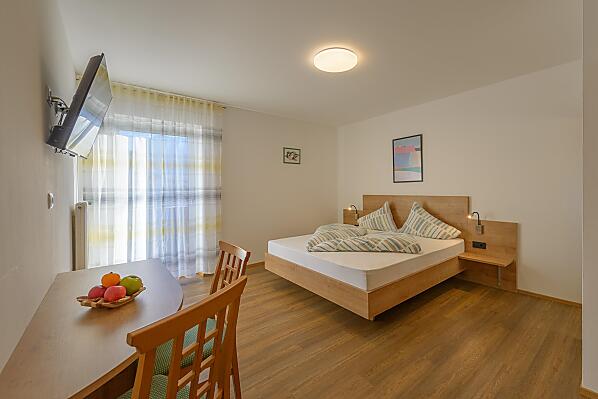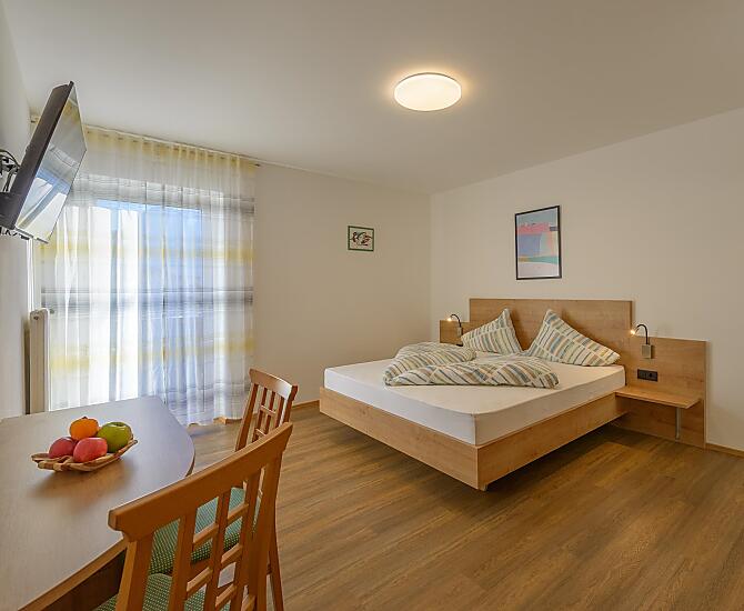 - Widok na winnice rozciaga sie az po jezioro Kalterer See. Pobliski przystanek autobusowy oraz bezplatna karta Mobil Card, która nasi goscie od nas otrzymuja, zachecaja ich do ekologicznego zwiedzania Poludniowego Tyrolu za pomoca srodków transportu publicznego. W bezposrednim sasiedztwie naszego gospodarstwa znajduja sie równiez sciezki rowerowe i szlaki turystyczne, które uprzyjemniaja wypoczynek. Dzien zaczyna sie od solidnego sniadania z lokalnymi produktami, wlasnymi owocami i domowymi ciastami. Wieczór mozna zakonczyc lampka wina w milym towarzystwie na tarasie lub w ogrodzie.