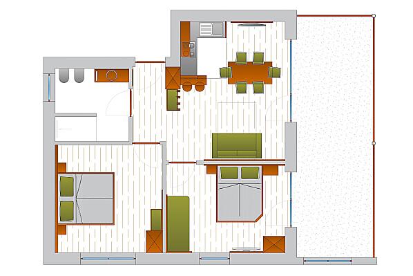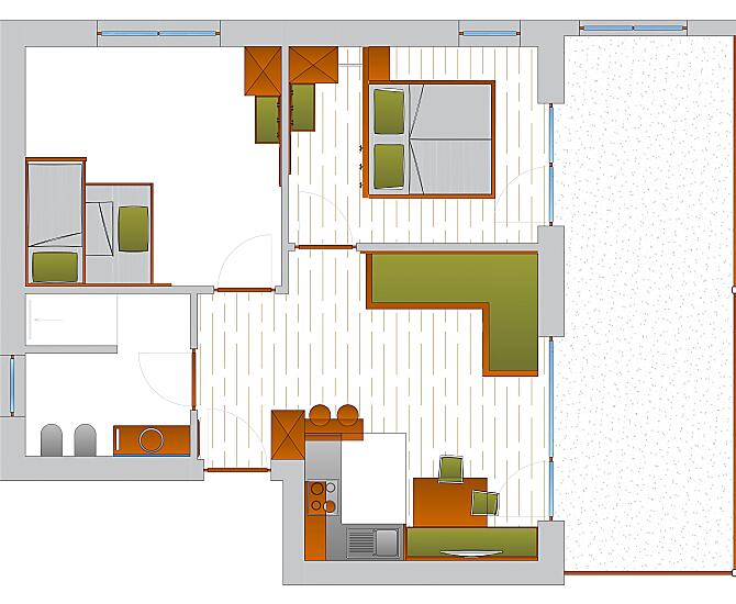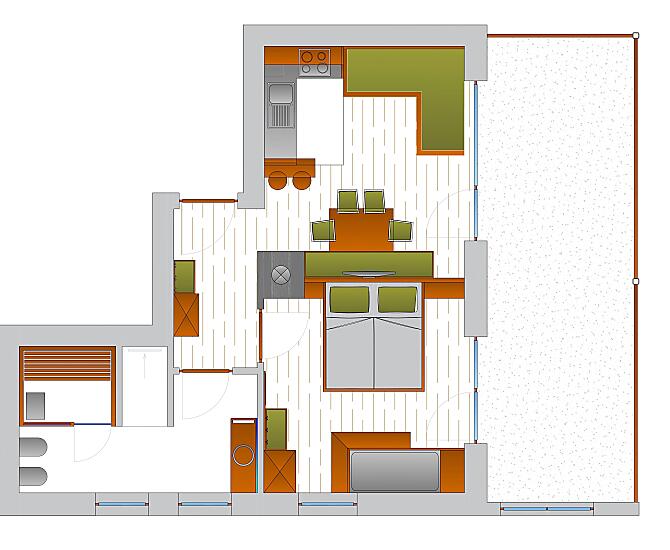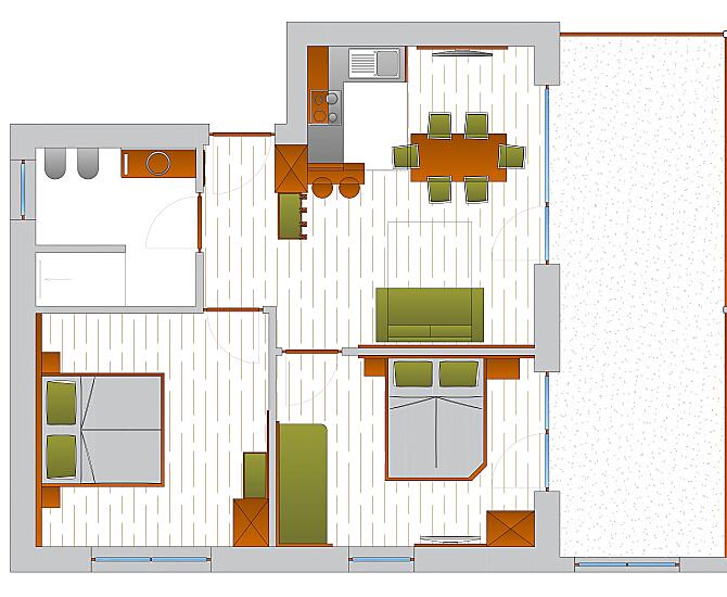 2-4 osób (4 stałych łóżek) 42m²