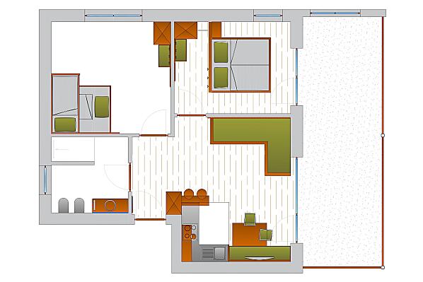 2-7 osób (4 stałych łóżek) 60m²