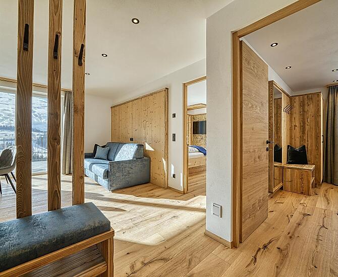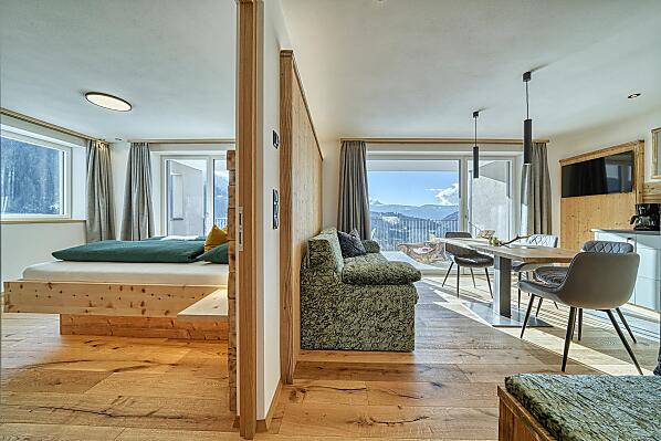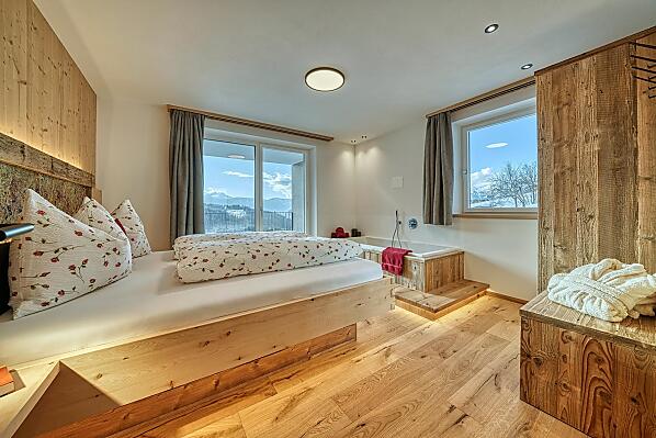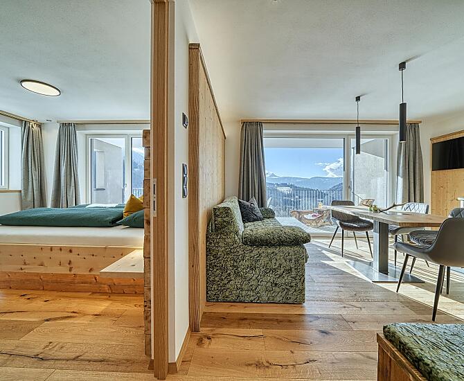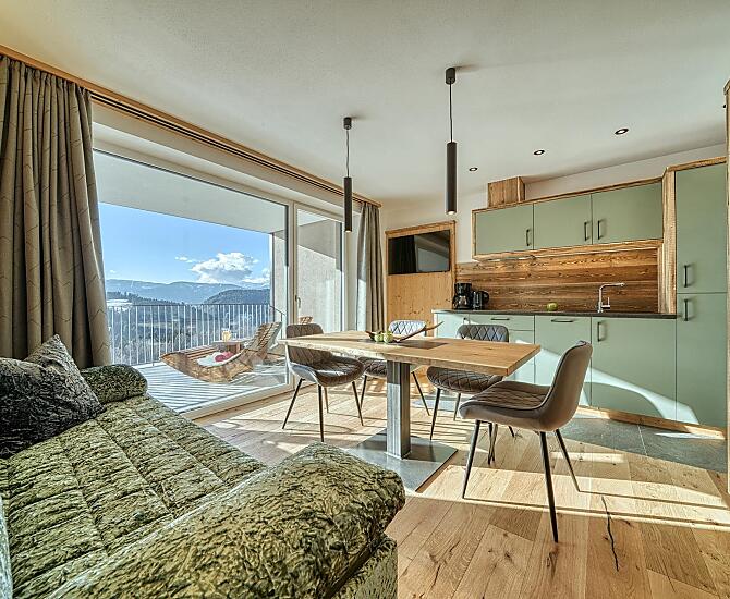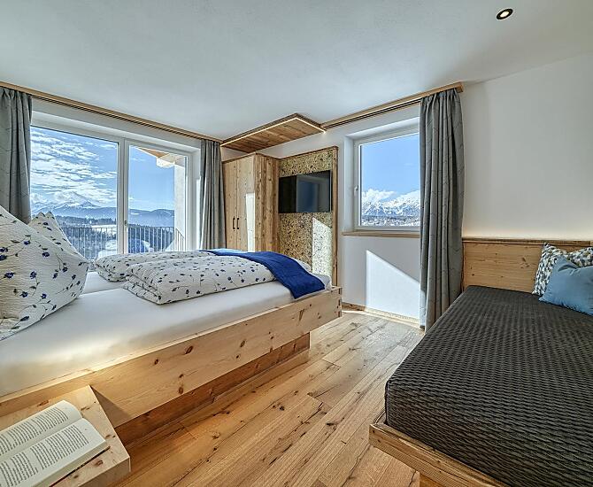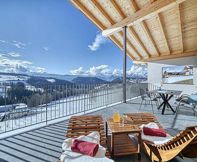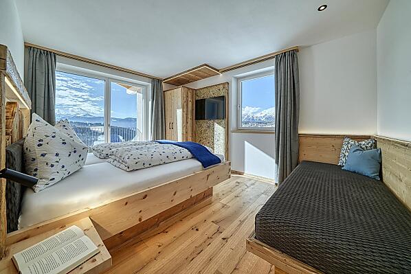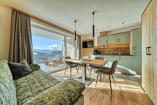 Nasze gospodarstwo położone jest na wysokości 1 300 m nad Merano, w górskiej miejscowości Hafling, i oferuje wypoczynek w gospodarstwie rolnym w ekskluzywnych, nowoczesnych mieszkaniach wakacyjnych z lokalnego drewna. Każde mieszkanie dysponuje dużą, prywatną loggią panoramiczną z widokiem na łąki, lasy i góry. Szlaki spacerowe i widokowe rozpoczynają się bezpośrednio przy domu, a ośrodek narciarski Meran 2000 oddalony jest zaledwie o 15 minut jazdy samochodem. W naszej kąciku gospodarstwa Goście mogą odkrywać i degustować wysokiej jakości miód z własnej pasieki, maliny, jaja oraz inne produkty z gospodarstwa – w ten sposób natura trafia prosto na stół. Duża łąka do leżakowania zaprasza do relaksu i zabawy, a na życzenie można cieszyć się prywatnymi dniami wellness w mieszkaniu wakacyjnym. Wszędzie wyczuwalny jest spokój gór, który pozwala nabrać energii i odnaleźć bliskość z naturą – to miejsce, w którym cisza, światło i świadoma jakość życia tworzą niezapomniane doświadczenie.