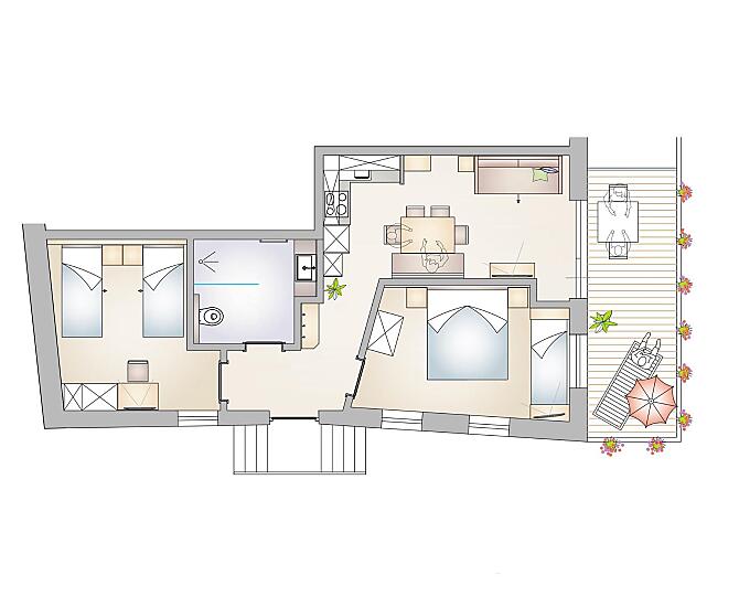 2-7 osób (4 stałych łóżek) 77m²