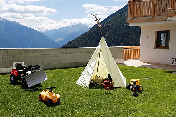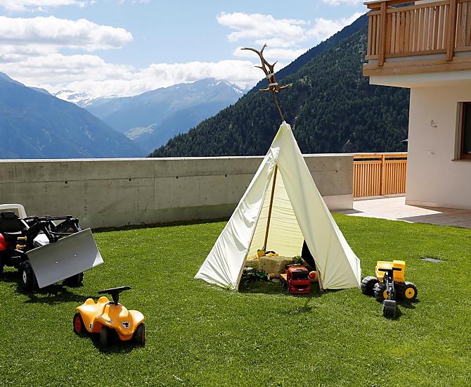 Gospodarstwo ze zwierzetami gospodarskimi znajduje sie na wysokosci 1470 m na trasie Naturnser Sonnenberg - Fuchsberg w miejscowosci Naturns u wejscia do doliny Schnalstal. Ciesz sie wyjatkowym widokiem i spokojem posród lak i lasów, z dala od dróg i halasu, w grupie Texel bezposrednio przy Meraner Höhenweg - drodze Meraner Höhenweg. Z naszego gospodarstwa prowadza liczne szlaki turystyczne do róznych punktów gastronomicznych. Aby nawet maluchy czuly sie jak w domu, mamy plac zabaw, pokój zabaw i oczywiscie codzienne wizyty w stajni, gdzie dzieci moga obserwowac i pomagac. Nasz dom wakacyjny z trzema mieszkaniami wakacyjnymi jest urzadzony w nowoczesnym stylu tyrolskim i jest "domem klimatycznym A" z kontrolowana wentylacja i ogrzewaniem podlogowym!