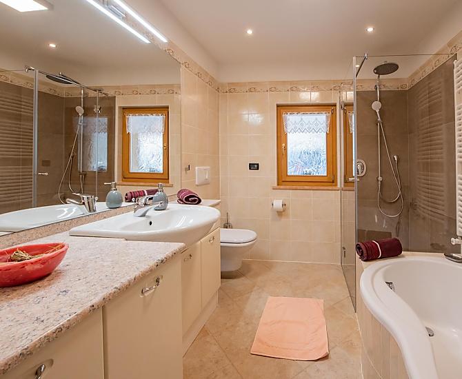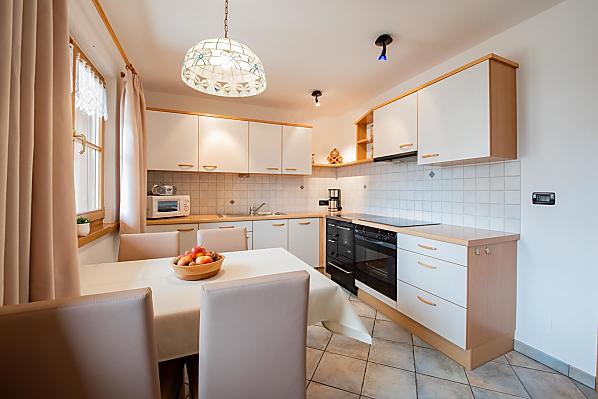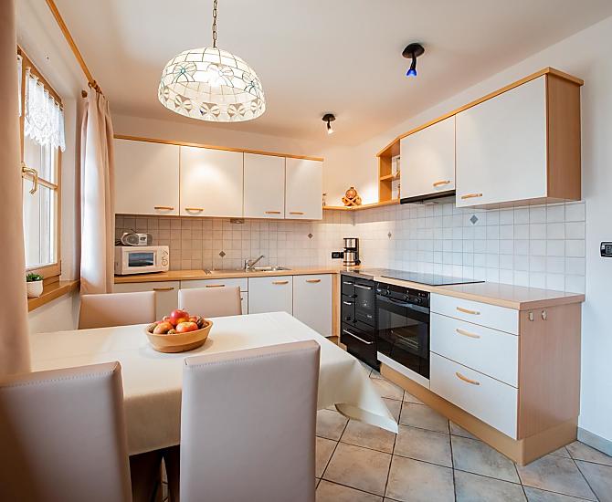 Ten wakacyjny apartament jest idealny dla rodzin i oferuje wychodzacy na poludnie taras z widokiem na góry.