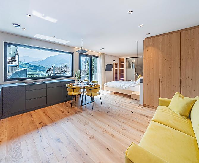 - Przestronne tarasy z widokiem na Bolzano i góry.