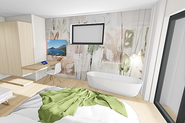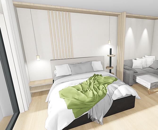 Pokoje w tym apartamencie sa jasne i pelne swiatla, wiec kiedy budzi Cie poranne slonce, od razu czujesz, ze dzien bedzie piekny. Ciesz sie sniadaniem na tarasie z imponujacym panoramicznym widokiem na nasze winnice. W nocy dobry sen zapewnia Ci meble z drewna limby znajdujace sie w sypialniach.
