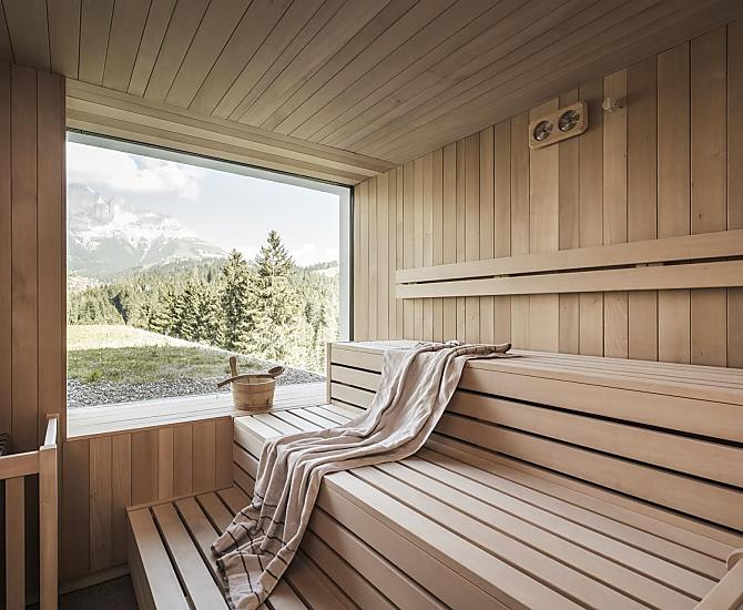 - Sauna z panoramicznym oknem i widokiem na góry