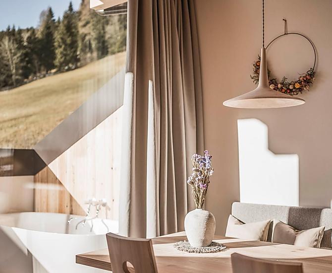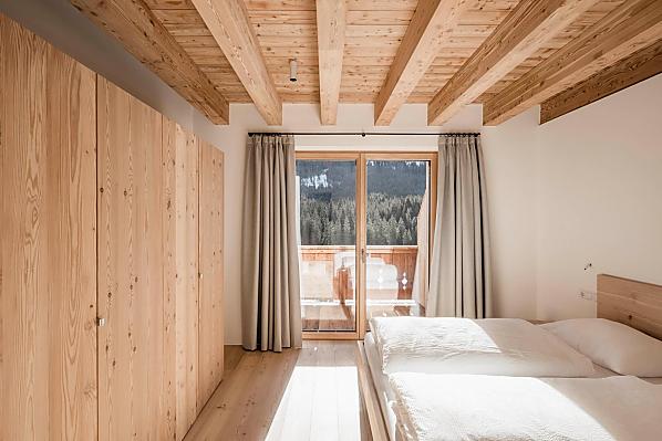 Pięć nowych mieszkań wakacyjnych łączy nowoczesną, prostą architekturę z naturalnymi materiałami z doliny - lokalne drewno i kamień tworzą ciepłą i przytulną atmosferę. Z każdego mieszkania roztacza się wspaniały widok na okoliczne góry.