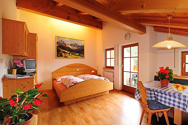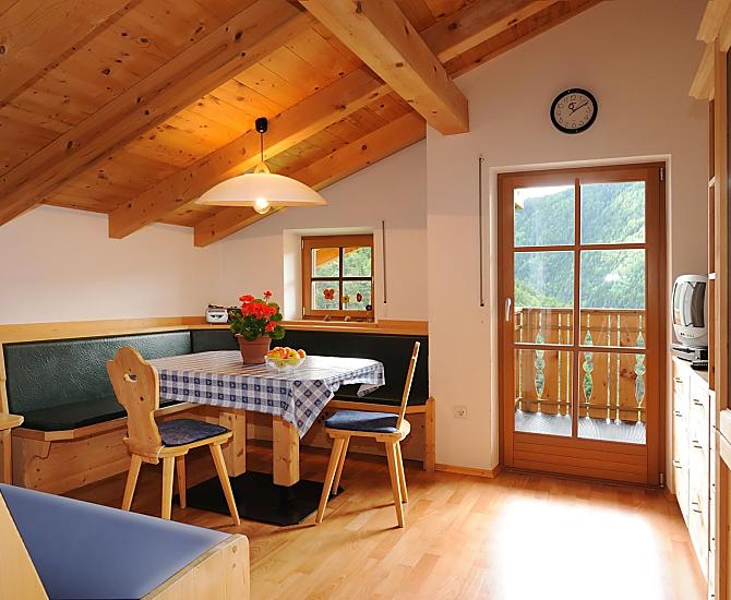Nasze gospodarstwo położone jest na wysokości 1 200 m n.p.m., na południowym zboczu doliny Aferer Tal. Mieszkają tu krowy, świnie, kury, koty, króliki oraz nasz pies stróżujący Samy. Czeka na Państwa świeże górskie powietrze, nieograniczone możliwości zabawy dla dzieci i prawdziwa południowotyrolska gościnność.